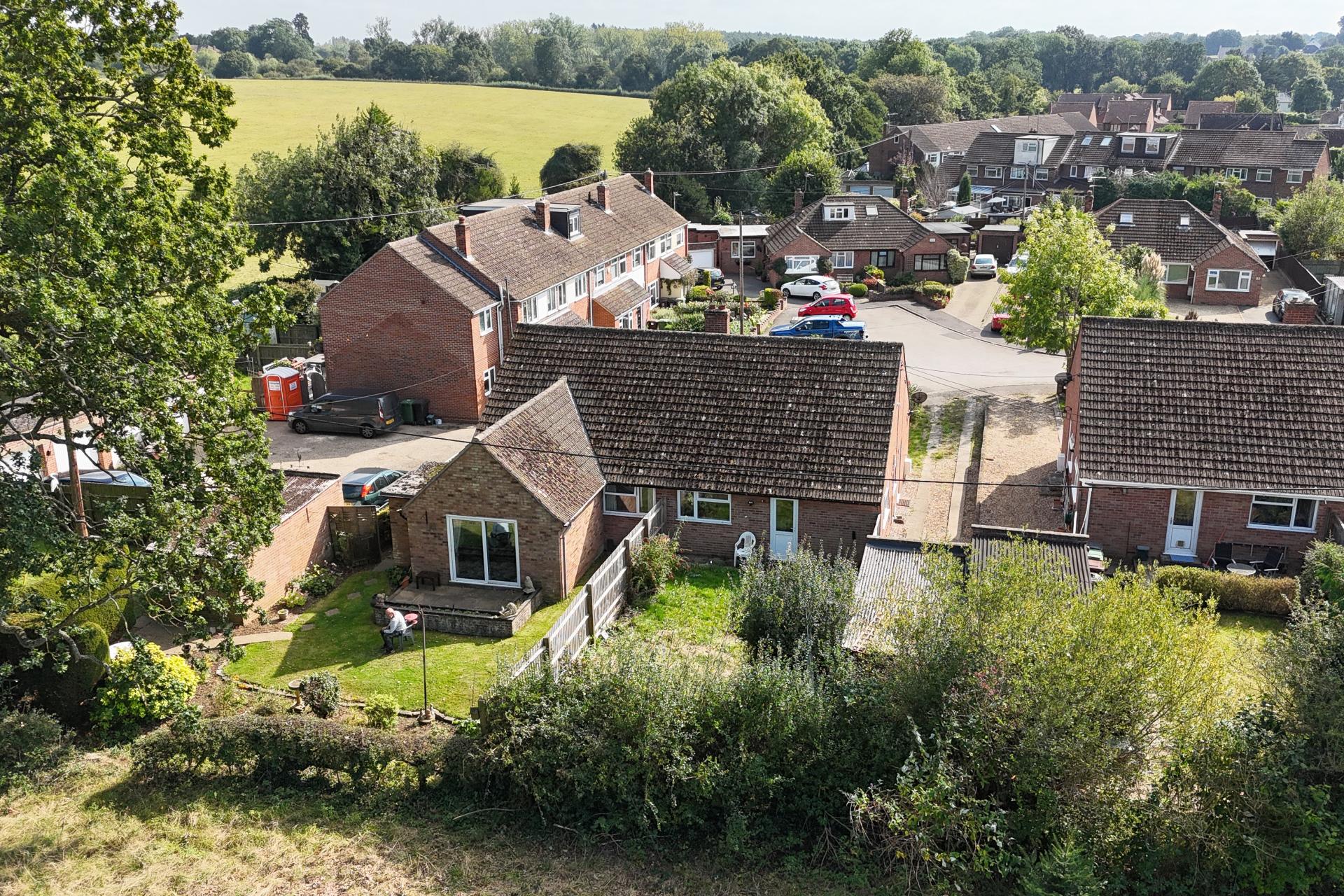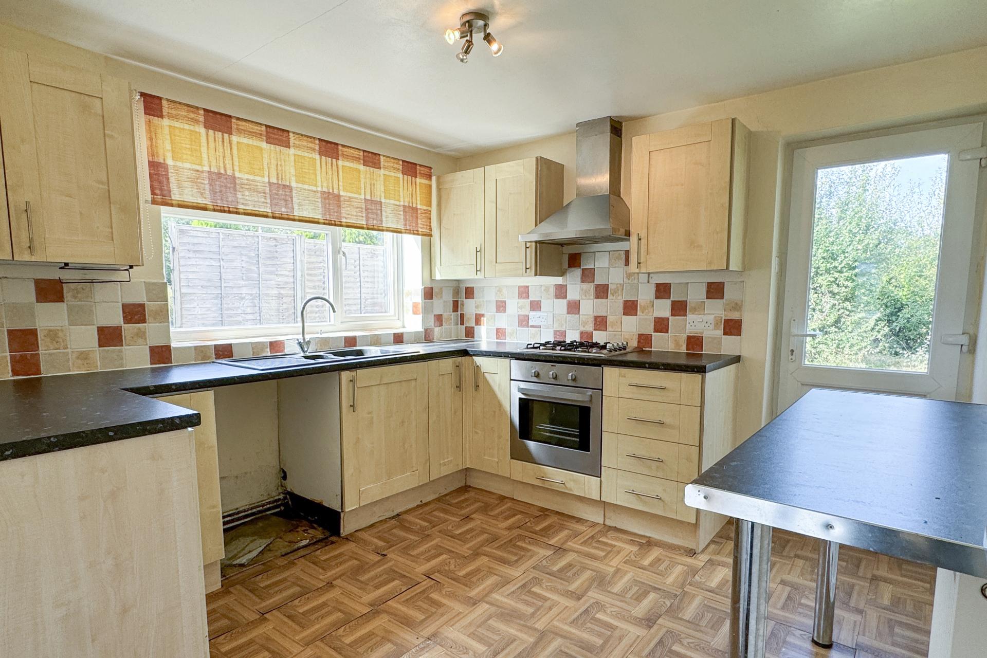 is charming two-bedroom semi-detached bungalow is located at the end of a peaceful cul-de-sac, offering a perfect blend of village tranquillity and countryside views as it backs onto open fields. The bright living room is welcoming with its front aspect windows, providing plenty of natural light. The kitchen features wall and base units, a breakfast bar, an electric oven with gas hob, an extractor, and space for a washing machine. A door from the kitchen leads directly to the garden, making it ideal for outdoor access.