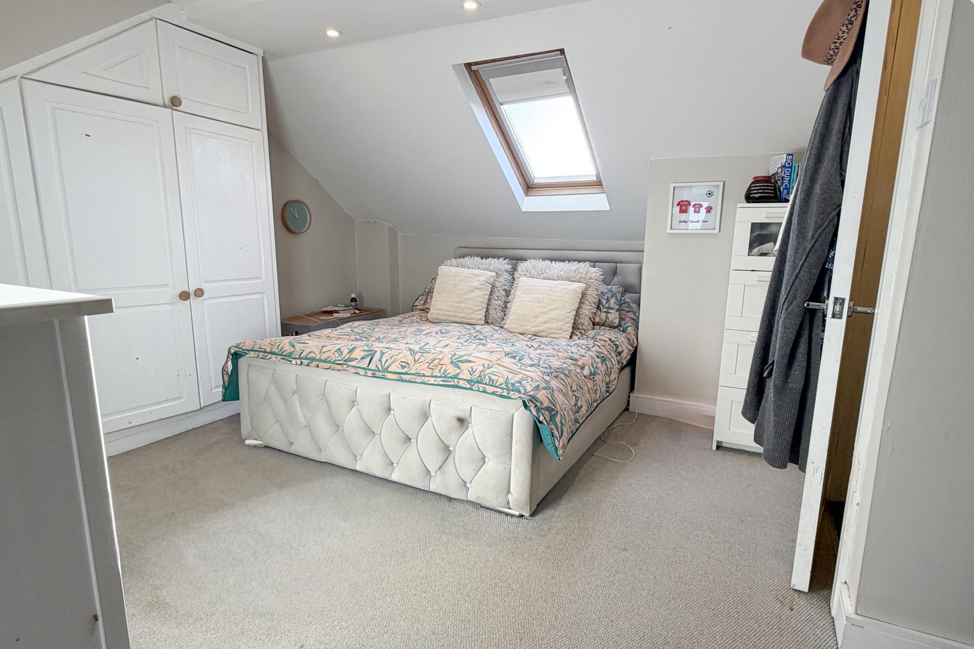 The loft conversion, completed prior to the current ownership, provides a generous master bedroom on the second floor. This bright and airy space enjoys excellent natural light from the windows, fitted wardrobes, and a beautifully presented en-suite shower room with shower, basin and WC, refurbished by the present owners.