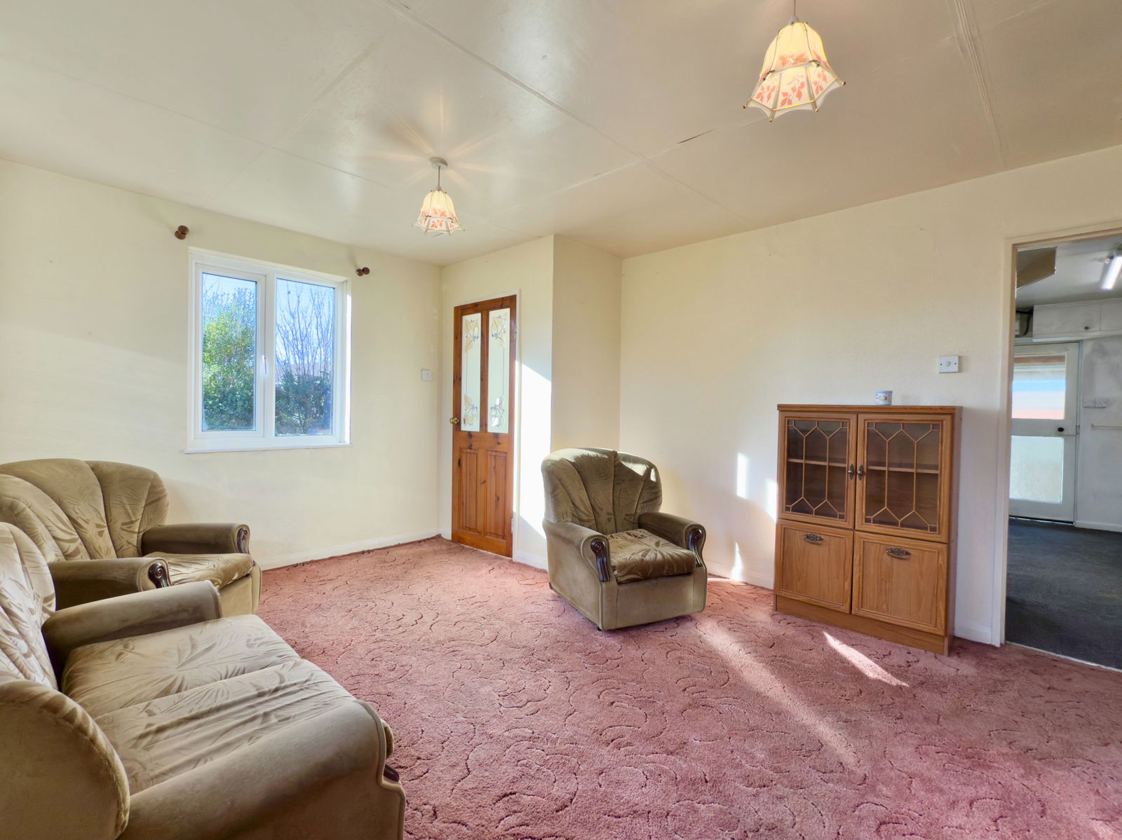 At the front there are 2 large areas laid to lawn with fence and hedge boundaries with a lovely range of mature shrubs, trees and hedges.  A path to the side leads to a patio area immediately at the rear.  Great views towards the sea and cliff tops.  There is a 5 bar gate to tarmac driveway providing ample parking for the property.