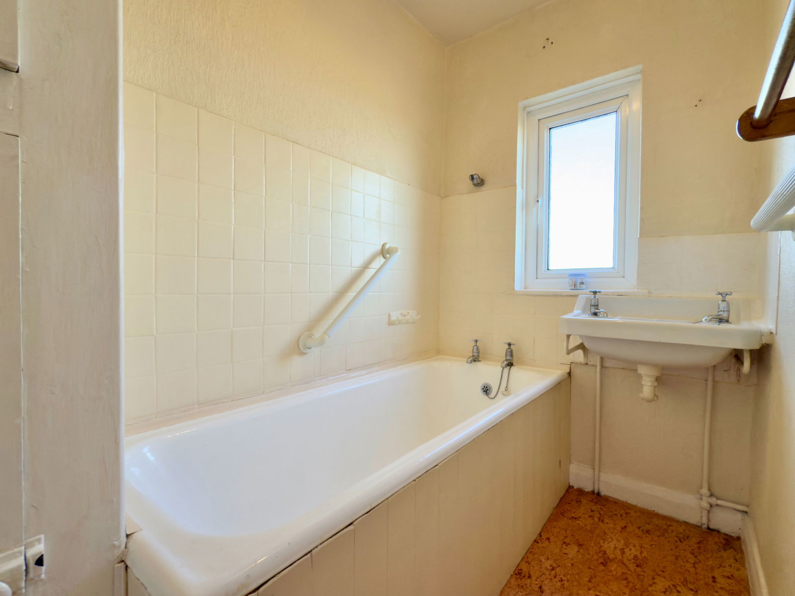 Part tiled.  Panelled bath.  Opaque UPVC double glazed window to rear.  Wash hand basin.  Storage cupboard.