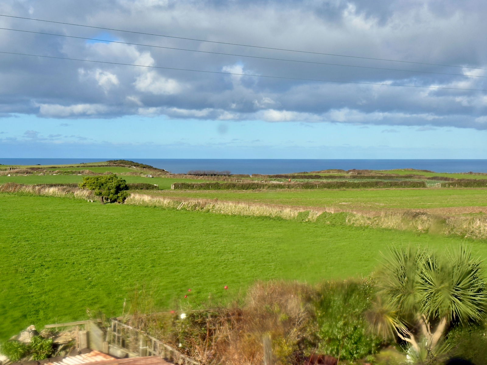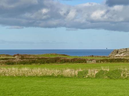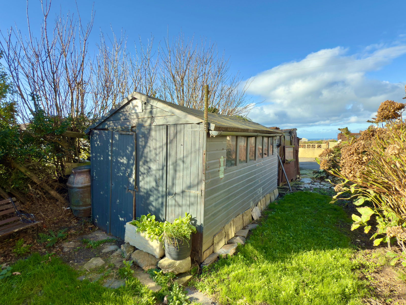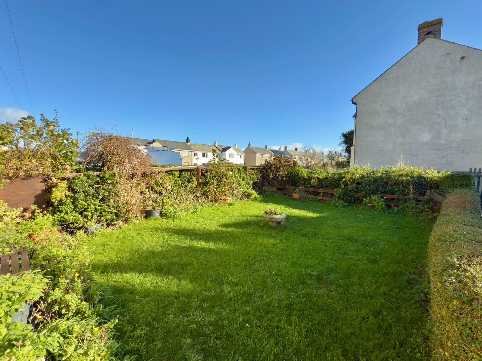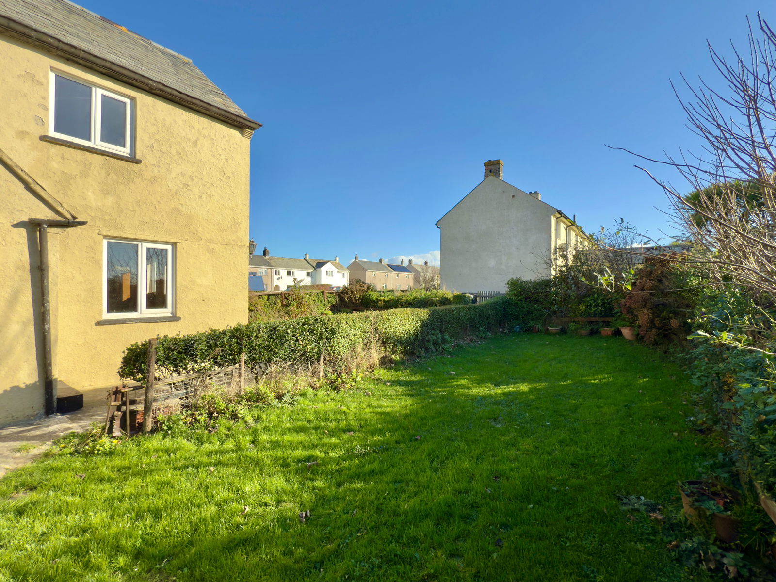 At the front there are 2 large areas laid to lawn with fence and hedge boundaries with a lovely range of mature shrubs, trees and hedges. A path to the side leads to a patio area immediately at the rear. Great views towards the sea and cliff tops. There is a 5 bar gate to tarmac driveway providing ample parking for the property.