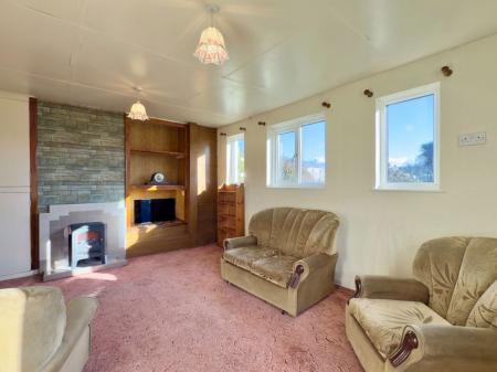 Dual aspect room with UPVC double glazed windows to front and side. Open fireplace with surround, recess shelving to side and recess storage cupboard housing back boiler. Door to