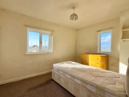 A dual aspect room with UPVC double glazed window to side overlooking the local football and cricket pitches. Built in wardrobe. Another UPVC double glazed window overlooking the countryside and views towards the sea.