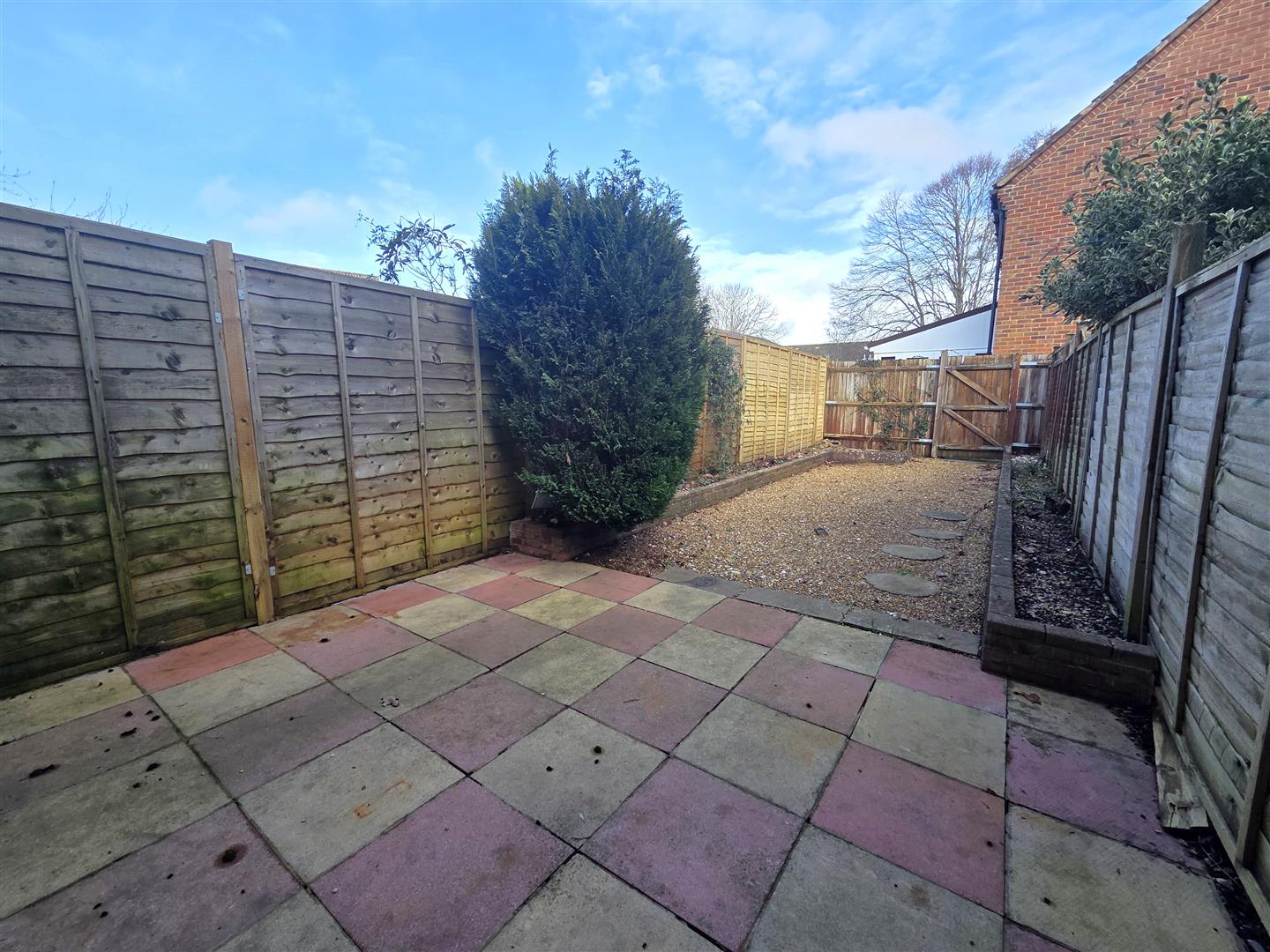 Rear garden laid to paved patio, shingled area with raised sleepers & rear access