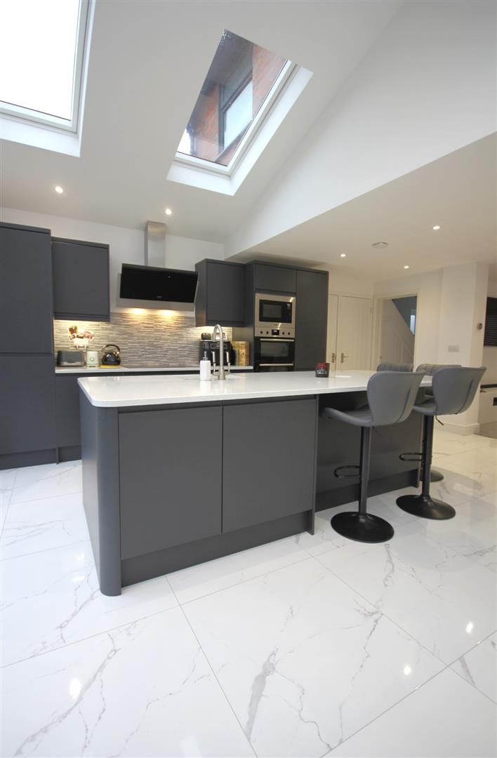 Stunning modern kitchen enjoying quartz worktops, matte cabinets & a large central island