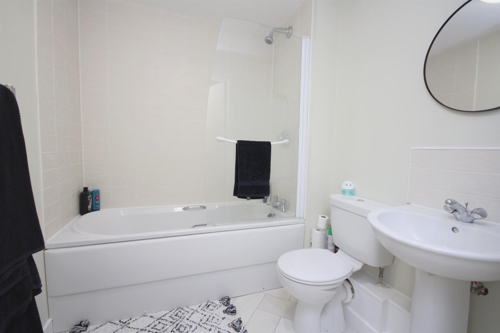 Main bathroom comprising three piece white suite