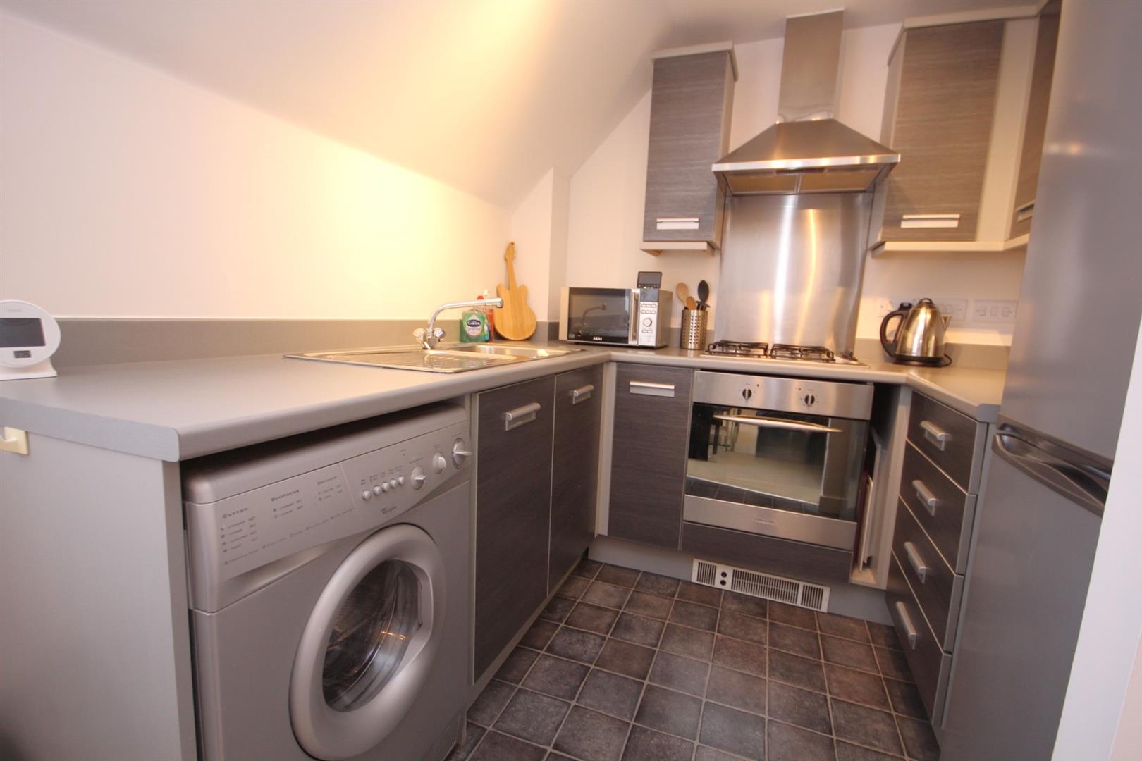 Kitchen boasting built in oven and hob with washing machine and fridge/freezer to remain