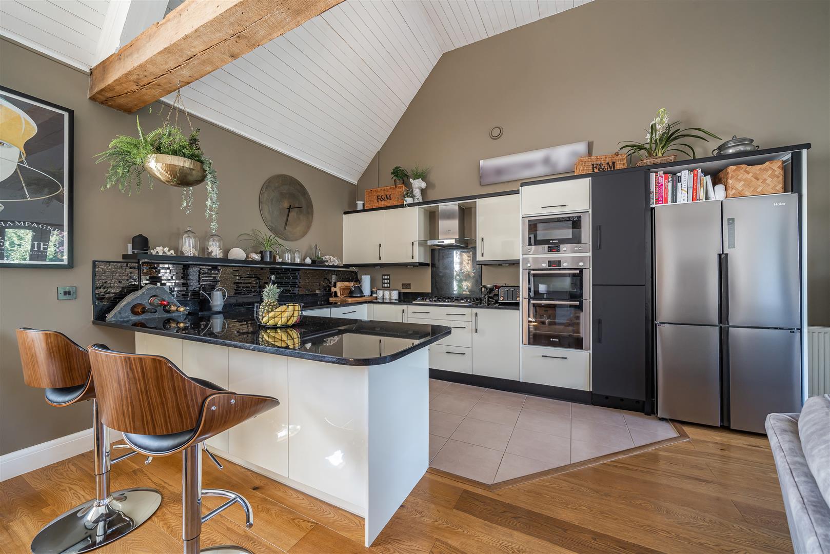 Wooden double glazed windows; Wooden flooring to reception areas and bedrooms; Wardrobe cupboards to two bedrooms; Loft hatch with retractable ladder; High gloss off-white and black kitchen cabinets with quartz worktops with peninsular unit; Integral appliances to include double oven/grill, microwave, five burner gas hob, dishwasher and fridge/freezer, Beautifully fitted bathrooms, Basement tanked and lined 9 years ago, Air recovery system refitted in November 2022 to whole of property; Further brick lined cellar; Low maintenance garden with wide terrace and flower borders; Gated parking area with 2 tandem parking spaces.