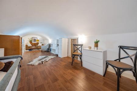 An opportunity to purchase a locally listed, period conversion of a property dating back to 1730, previously used as a theatre, assembly room and more recently a public house. Unique characteristics are found throughout this lovely attached home, with the principal reception room incorporating a lifestyle live in- kitchen/entertainment space beneath the pillared vaulted ceiling. Dual aspect windows and French doors lead to the professionally landscape gardens complete with wide terracing, contained by gabion crate walls, a cycle shed and a rear gate. This leads to the tandem parking spaces within a gated courtyard. The barrel vaulted room to the ground floor is suitable for many uses and is some 38 foot in length, so with its adjacent bathroom could provide an additional bedroom suite to the two first floor bedrooms served by a further shower room. To the front a walled courtyard garden provides another sunny sitting area with a gate leading to the village and its walks along Titchfield Canal to Meon Shore and the beach beyond, together with excellent local amenities available on foot.