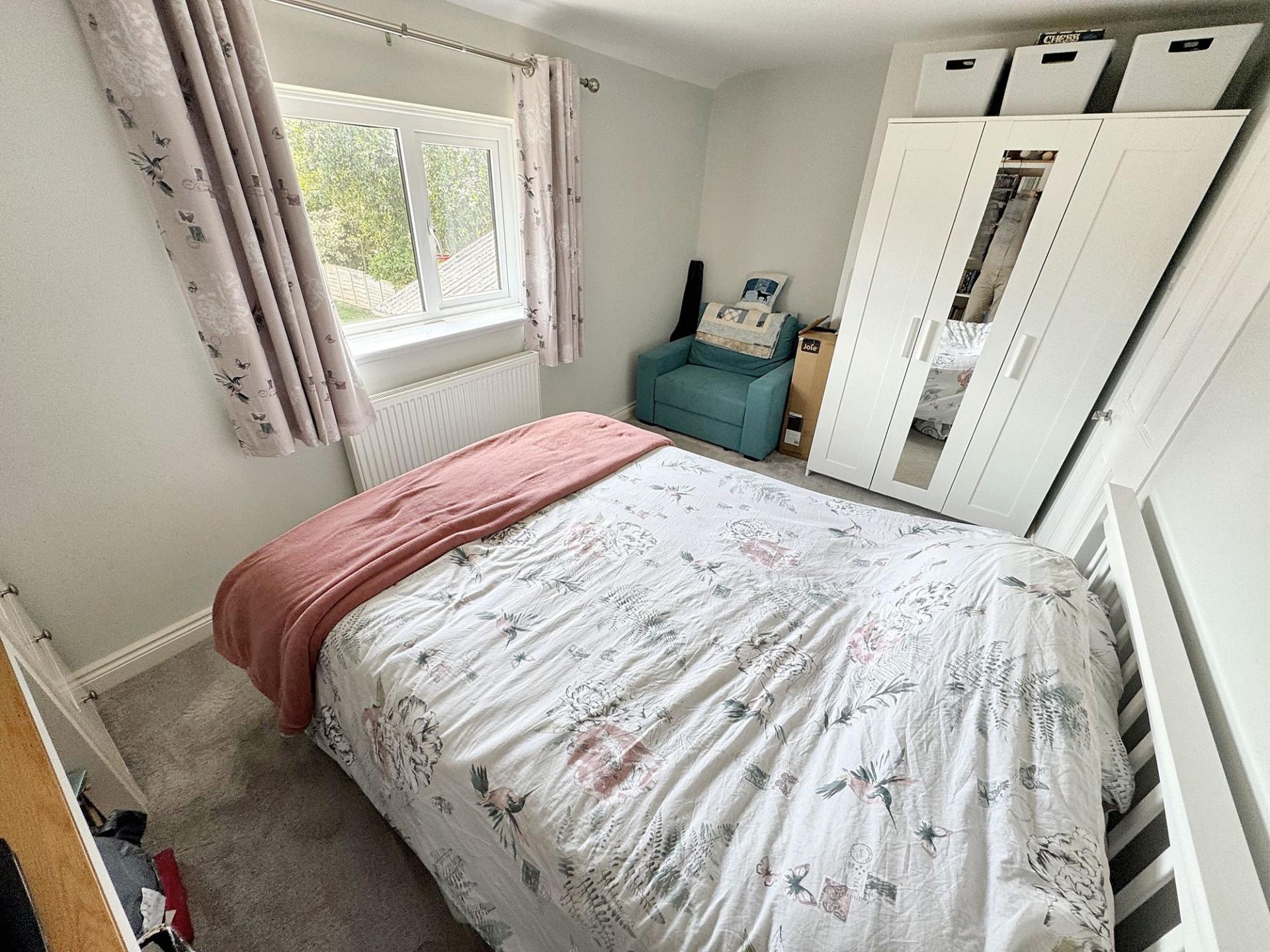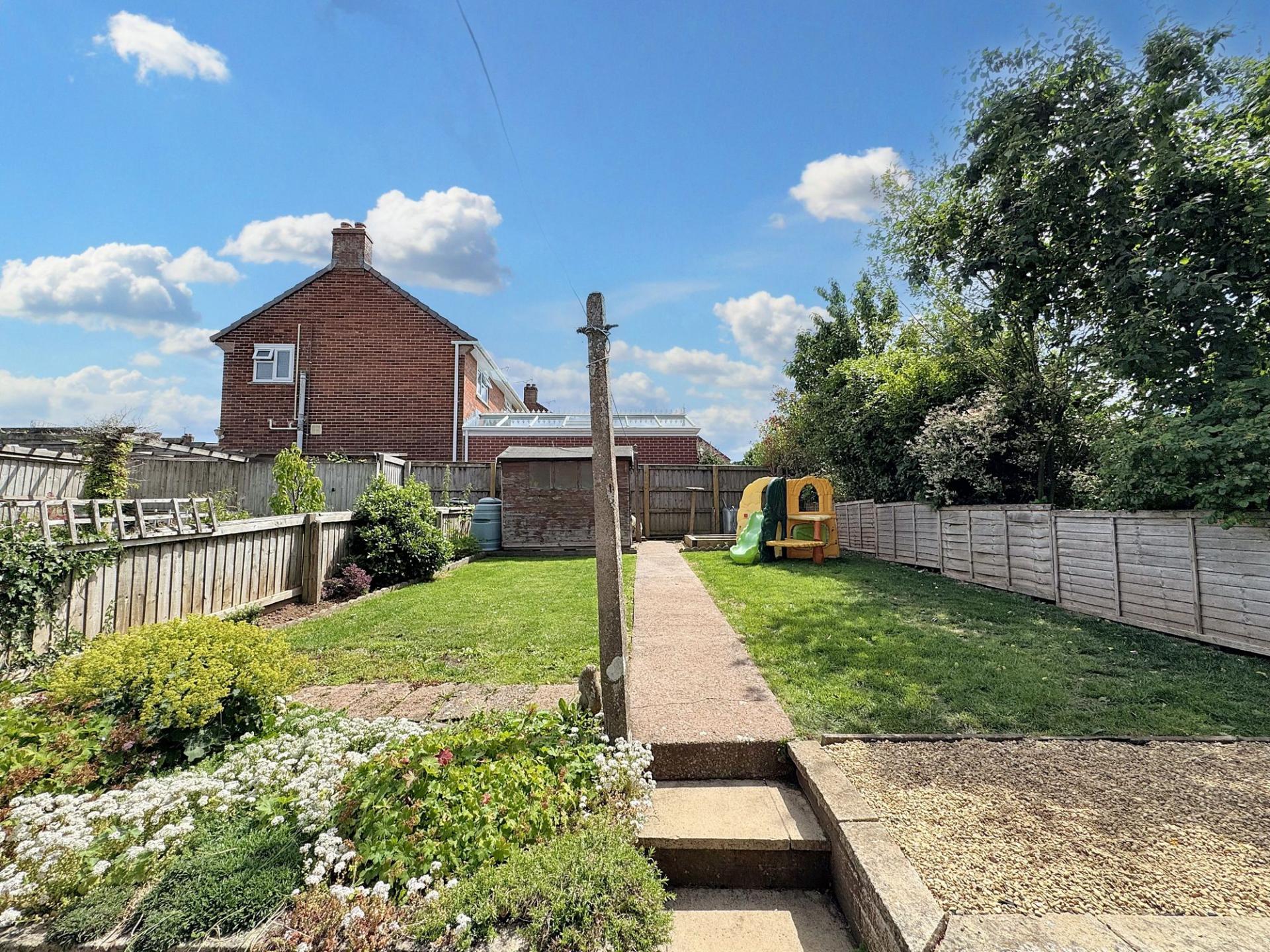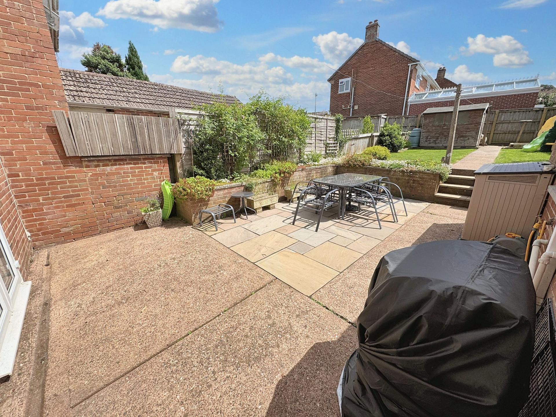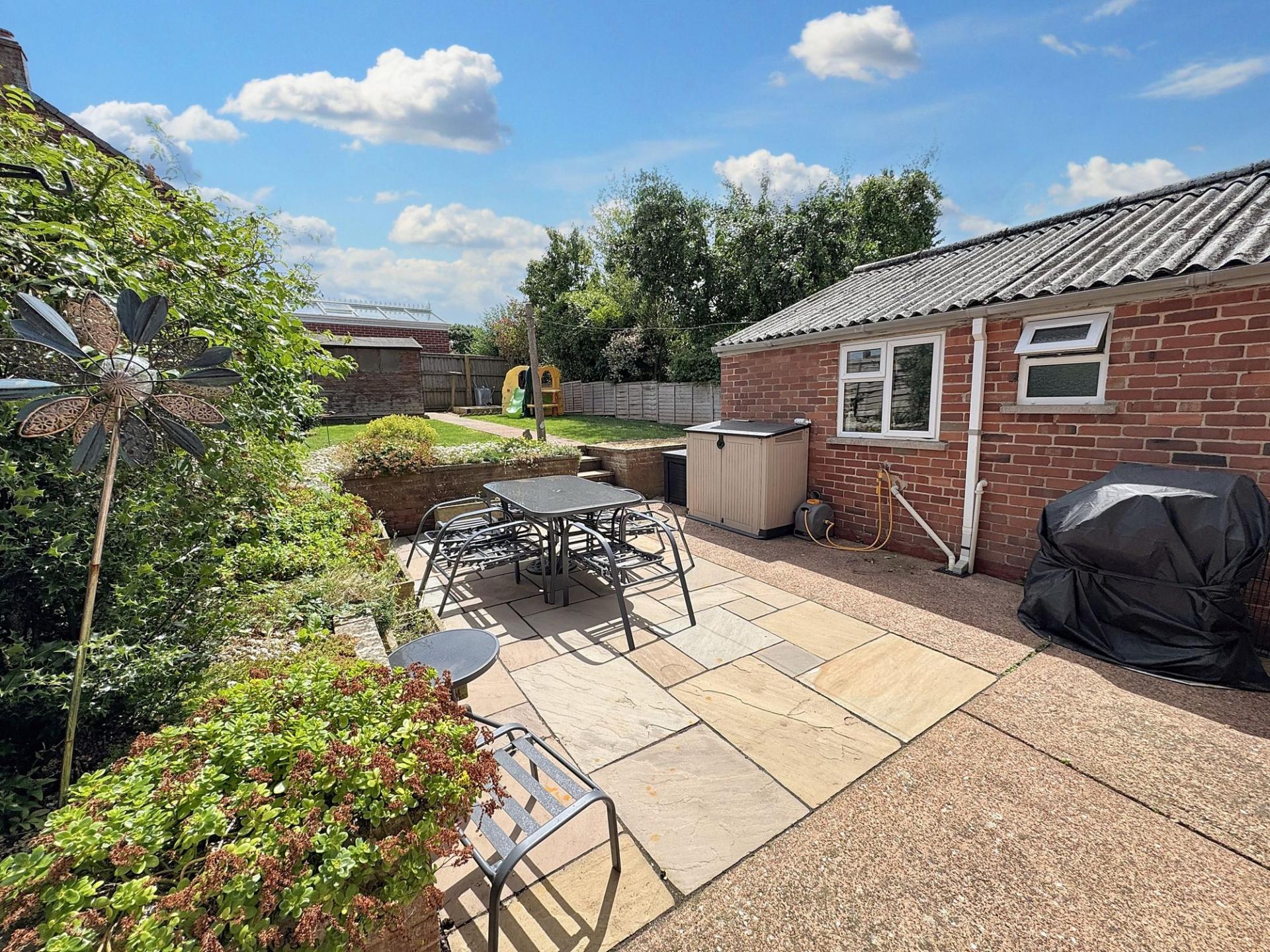 - Landscaped south-facing rear garden with patio, raised beds, lawn, and shed