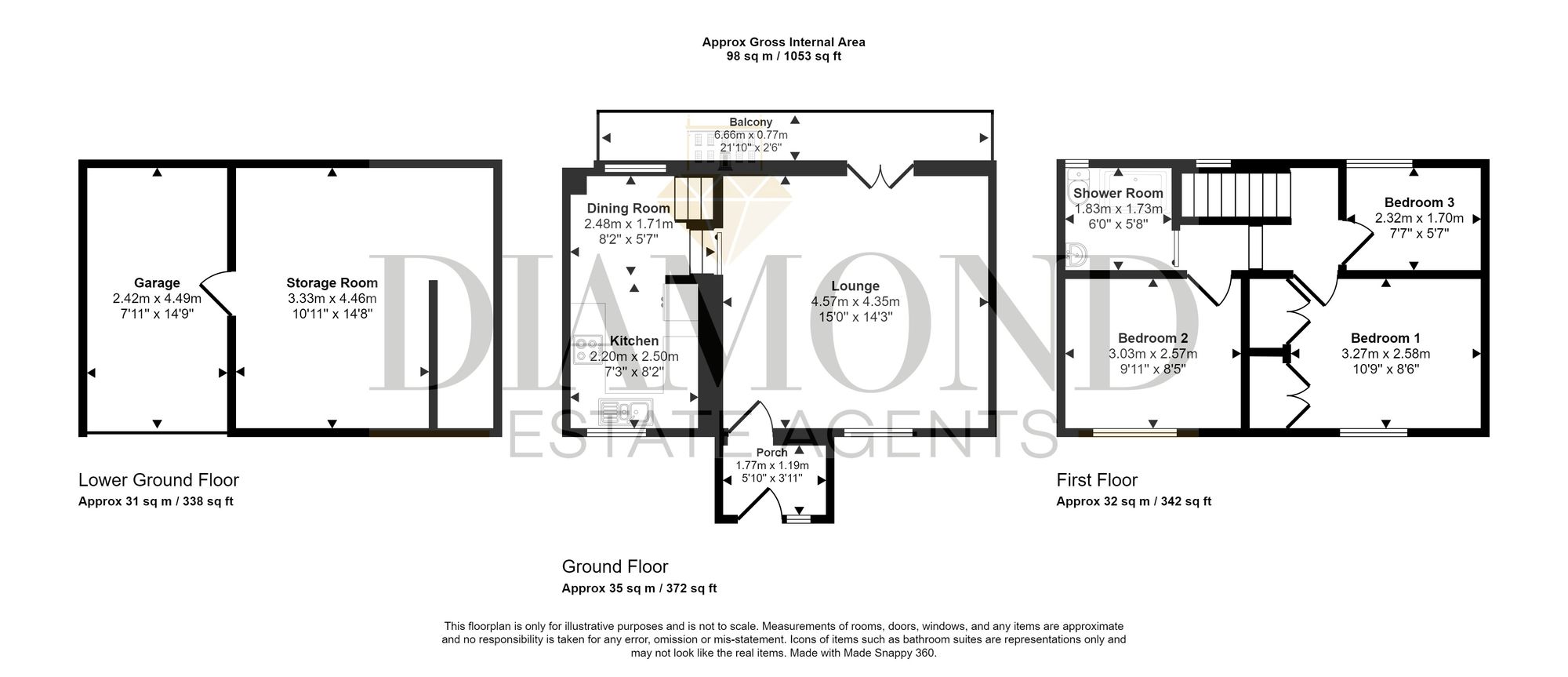- Spacious lounge/diner with exposed wooden lintels and direct balcony access
