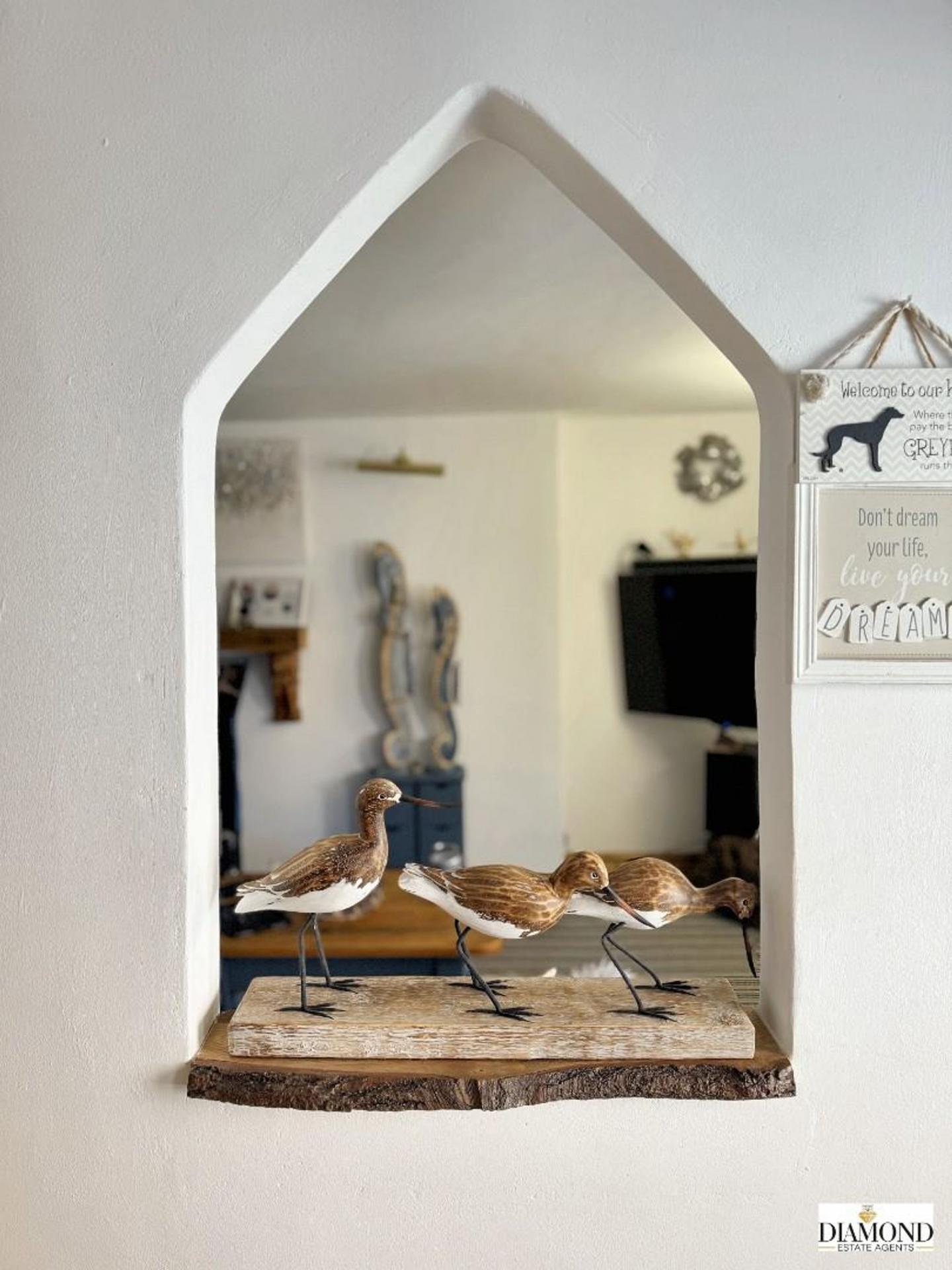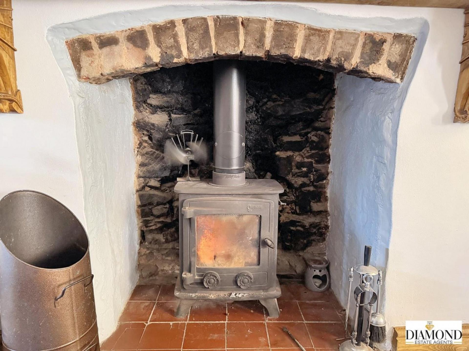 - Feature fireplace giving a stunning centerpiece in the lounge, with a wood burner set on a tiled hearth with a stone-brick surround and wooden mantle.