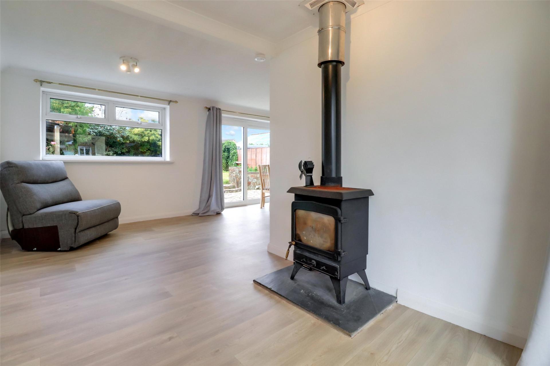 Step into a welcoming hallway leading to an impressive L-shaped kitchen/diner/lounge. The kitchen boasts stylish units and generous workspace, flowing seamlessly into the dining area with sliding doors to the rear garden. The lounge features a log burner and its own sliding doors to the driveway, creating a light-filled space perfect for entertaining or relaxing. The main bedroom is a spacious double, the second benefits from built-in wardrobes, and the thirdideal as a bedroom or studyopens to a versatile lean-to conservatory/utility with garden access.