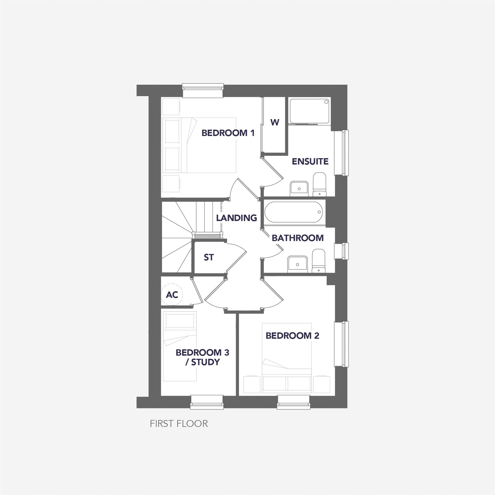 The Lawton - is a semi-detached family home offering entrance hall, cloakroom, living room, kitchen/dining room with french doors to the garden, on the first floor 3 bedrooms (one en-suite) and family bathroom. West facing garden and parking for two cars.