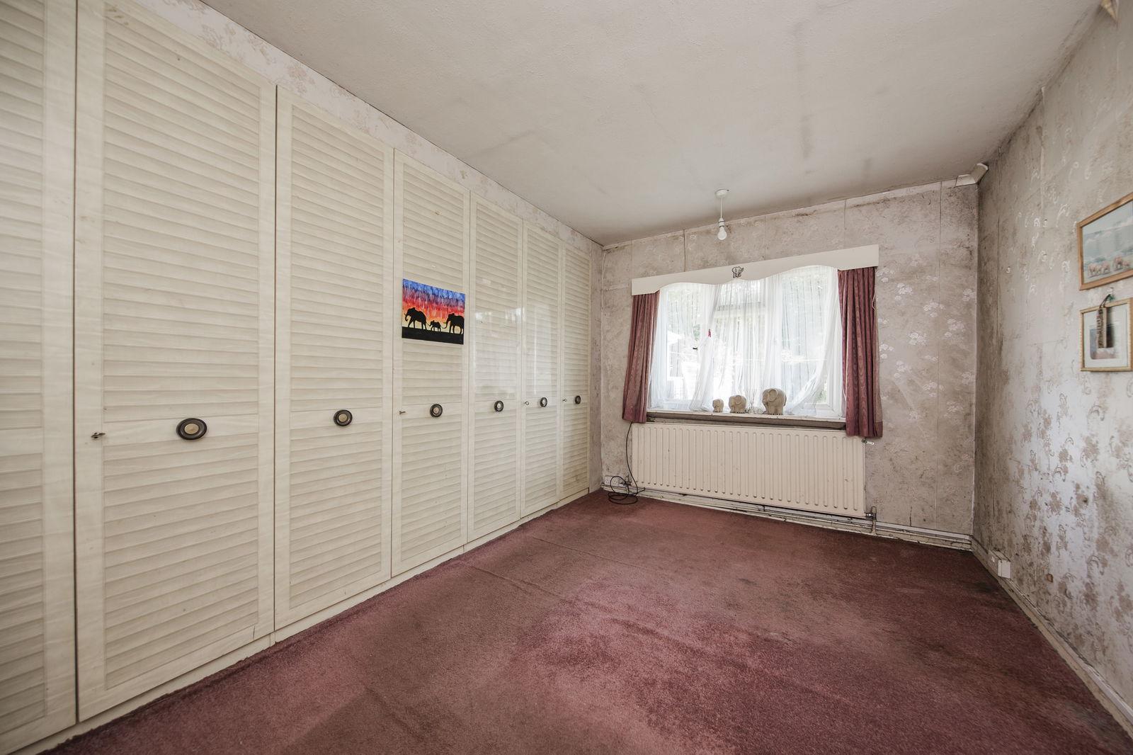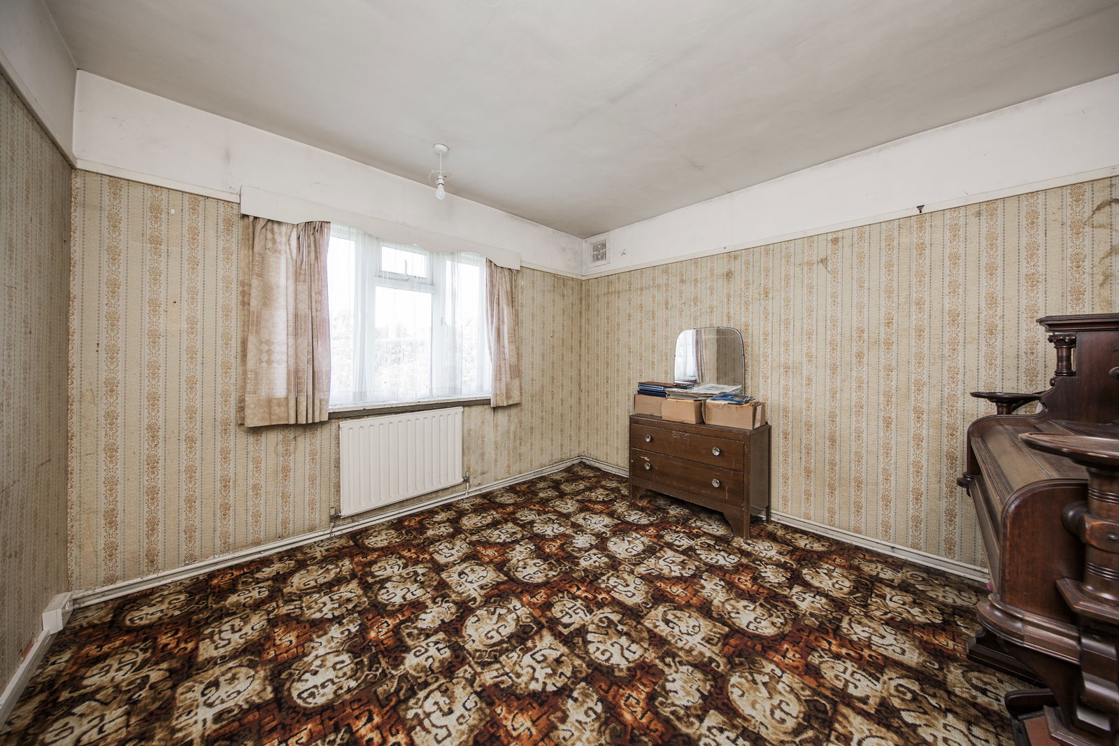 BEDROOM: A double bedroom, carpeted, radiator, space for wardrobes etc. Wide window with views of front garden.