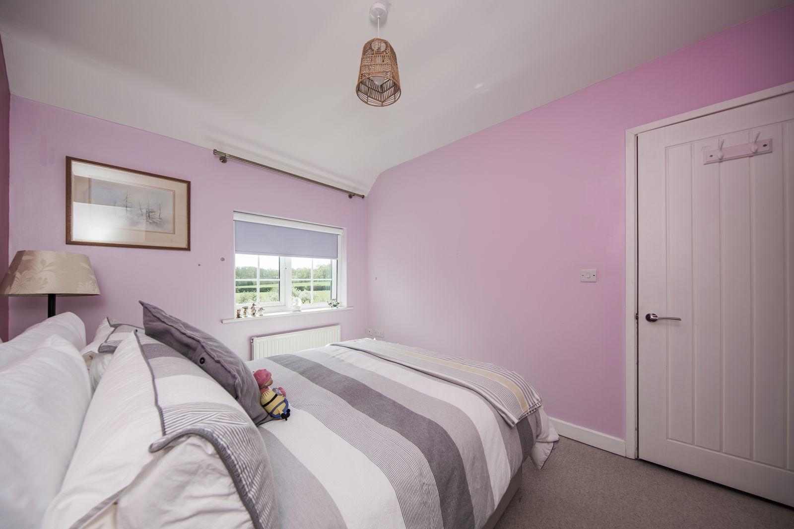 BEDROOM: Double, window at front with views of fields, fitted wardrobes, carpeted, fitted blind.