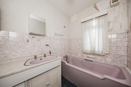 BATHROOM: Fitted with a bath with shower attachment, wash hand basin. Part tiled, carpeted, radiator, extractor fan. Frosted window.