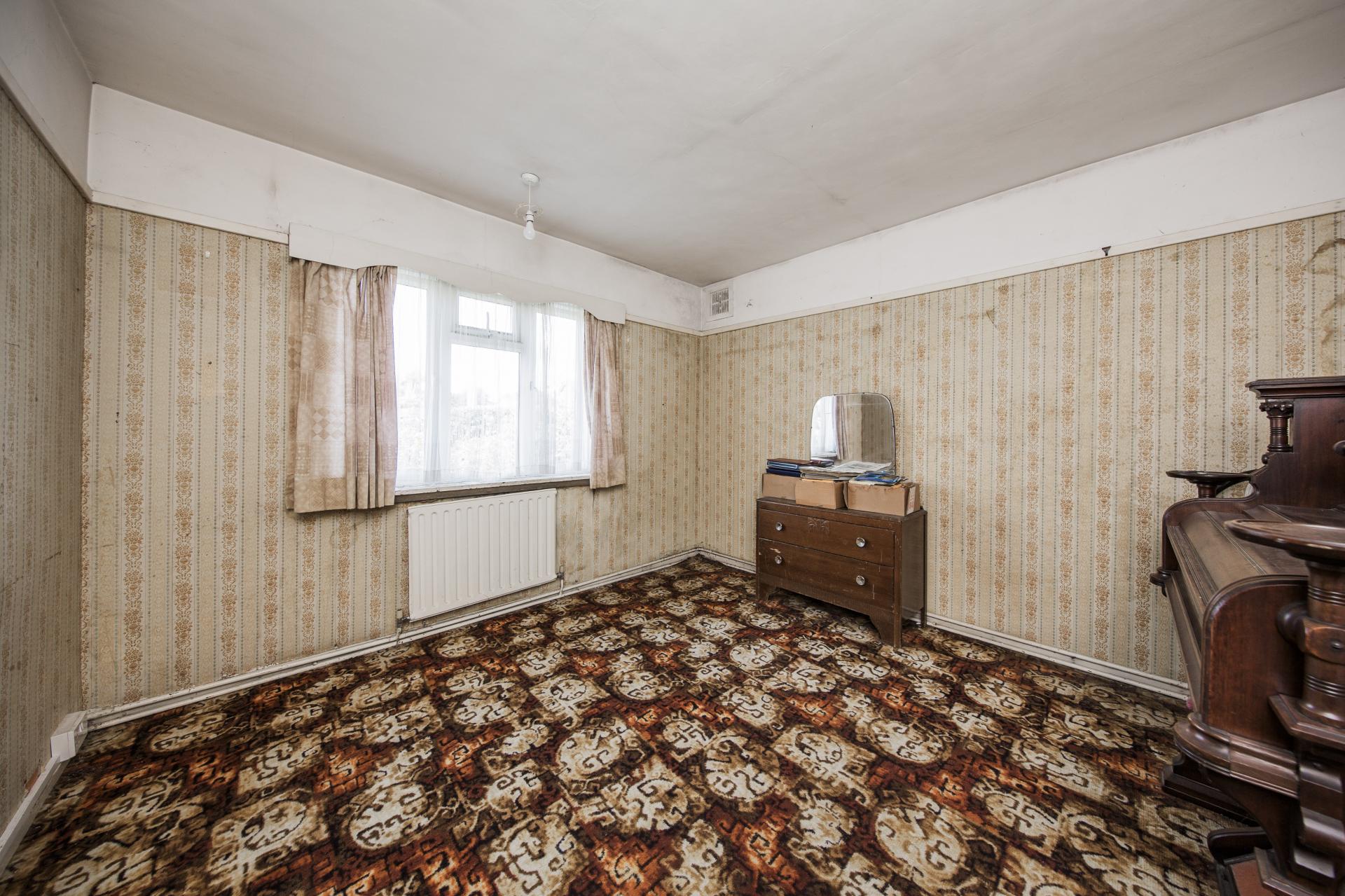 BEDROOM: A double bedroom, carpeted, radiator, space for wardrobes etc. Wide window with views of front garden.