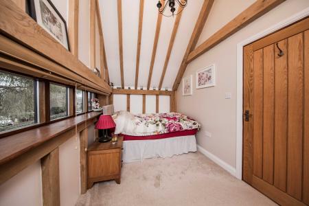 BEDROOM: Double Glazed window, double glazed door giving access to fire escape, beamed ceiling - currently used as a study.