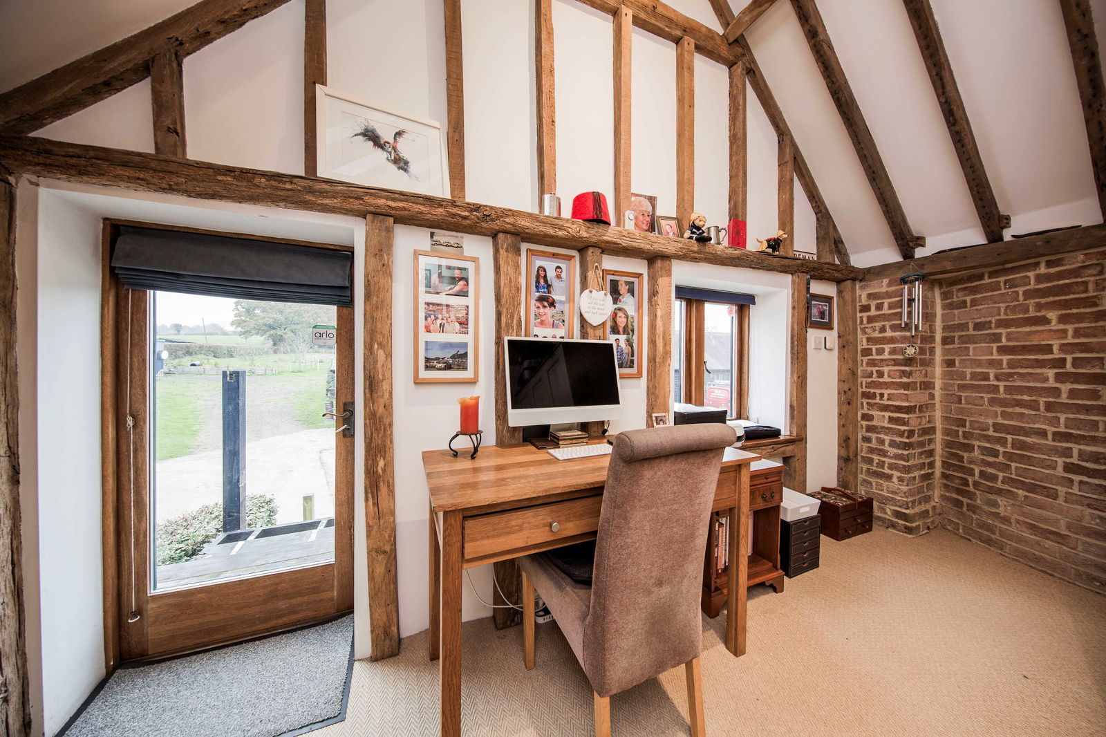 BEDROOM: Double Glazed window, double glazed door giving access to fire escape, beamed ceiling - currently used as a study.