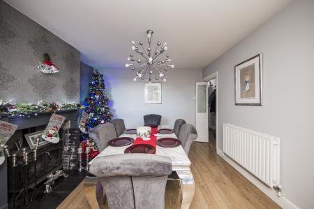 DINING ROOM: Double glazed window to rear, feature fireplace with log burner, laminate flooring, radiator.