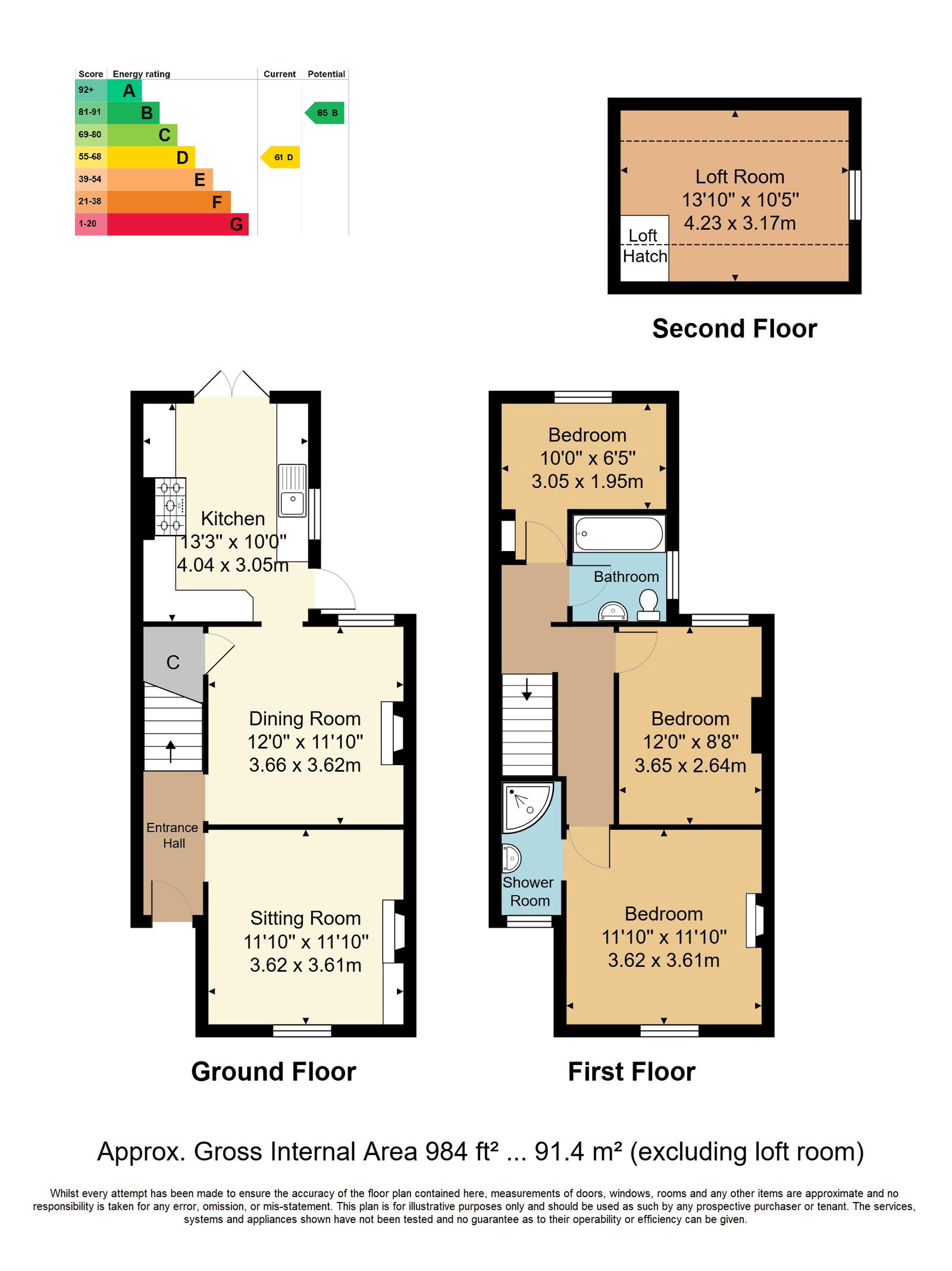 Upstairs there are two double bedrooms and a single bedroom, the master bedroom having a shower room, and a family bathroom. There is also a loft room which could be fully converted (subject to the usual consents).