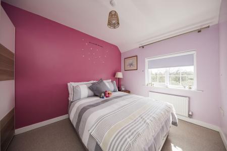 BEDROOM: Double, window at front with views of fields, fitted wardrobes, carpeted, fitted blind.