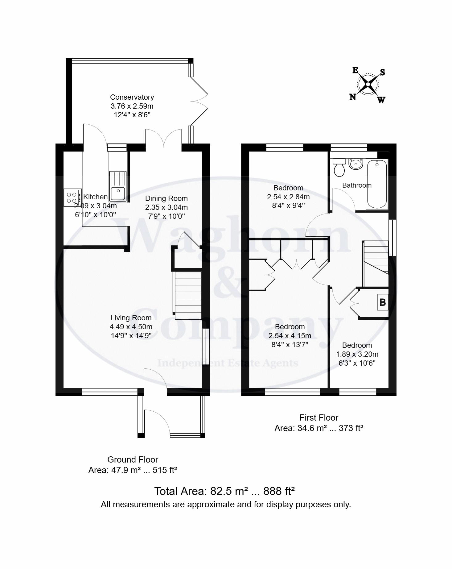 8' 4'' x 9' 3'' (2.54m x 2.82m)