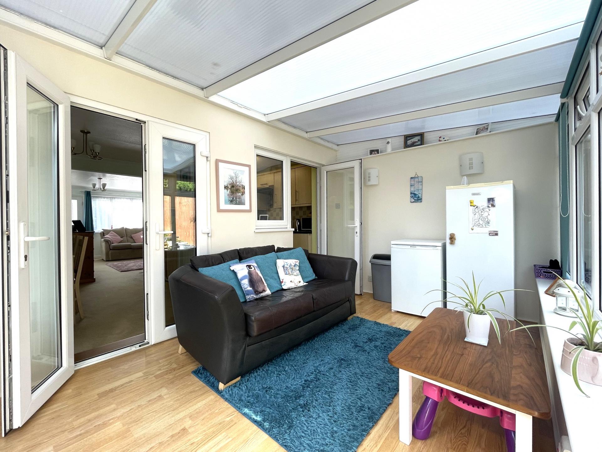 Double glazed to side and rear, French patio doors leading to rear garden and radiator.