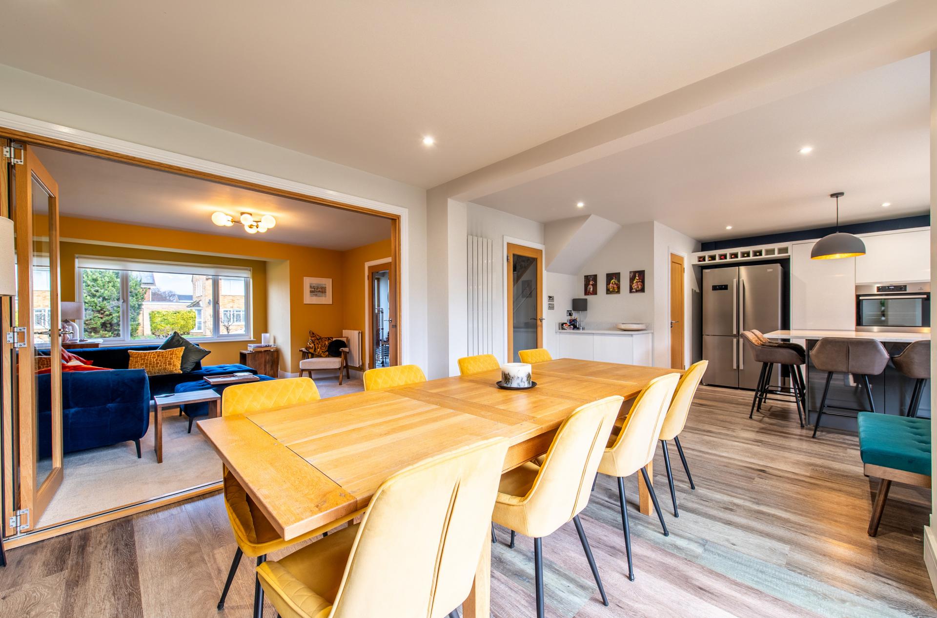 Bi fold doors leading to rear garden, double glazed side window, wood effect flooring (Karndean), and vertical radiator.