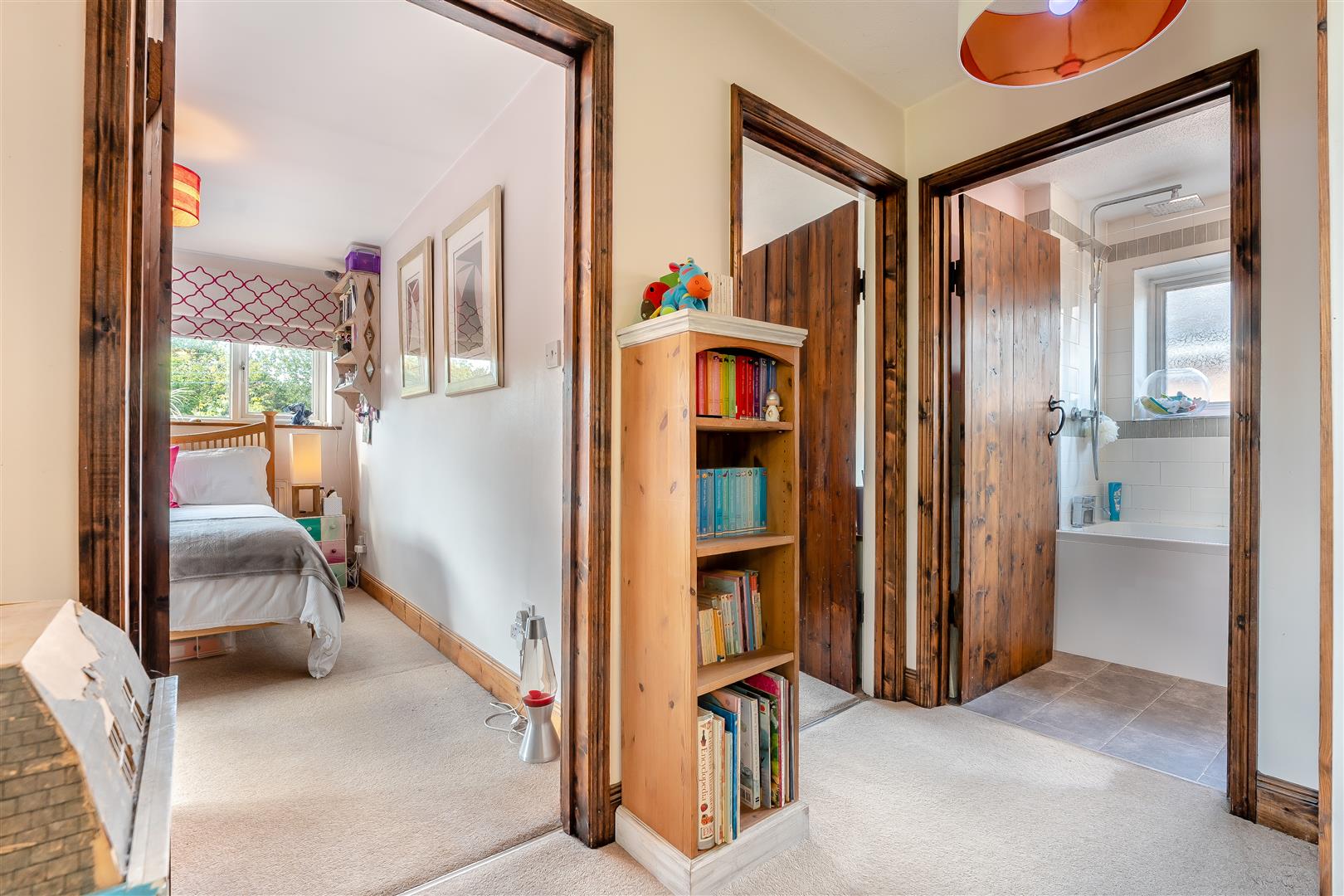 Upstairs, there are four spacious double bedrooms. The main bedroom offers an en-suite bathroom with both a bathtub and separate shower, while the family bathroom serves the remaining bedrooms. A noteworthy feature is the expansive loft area, accessed via a door and stairs, which benefits from a window and is currently used for excellent storage.