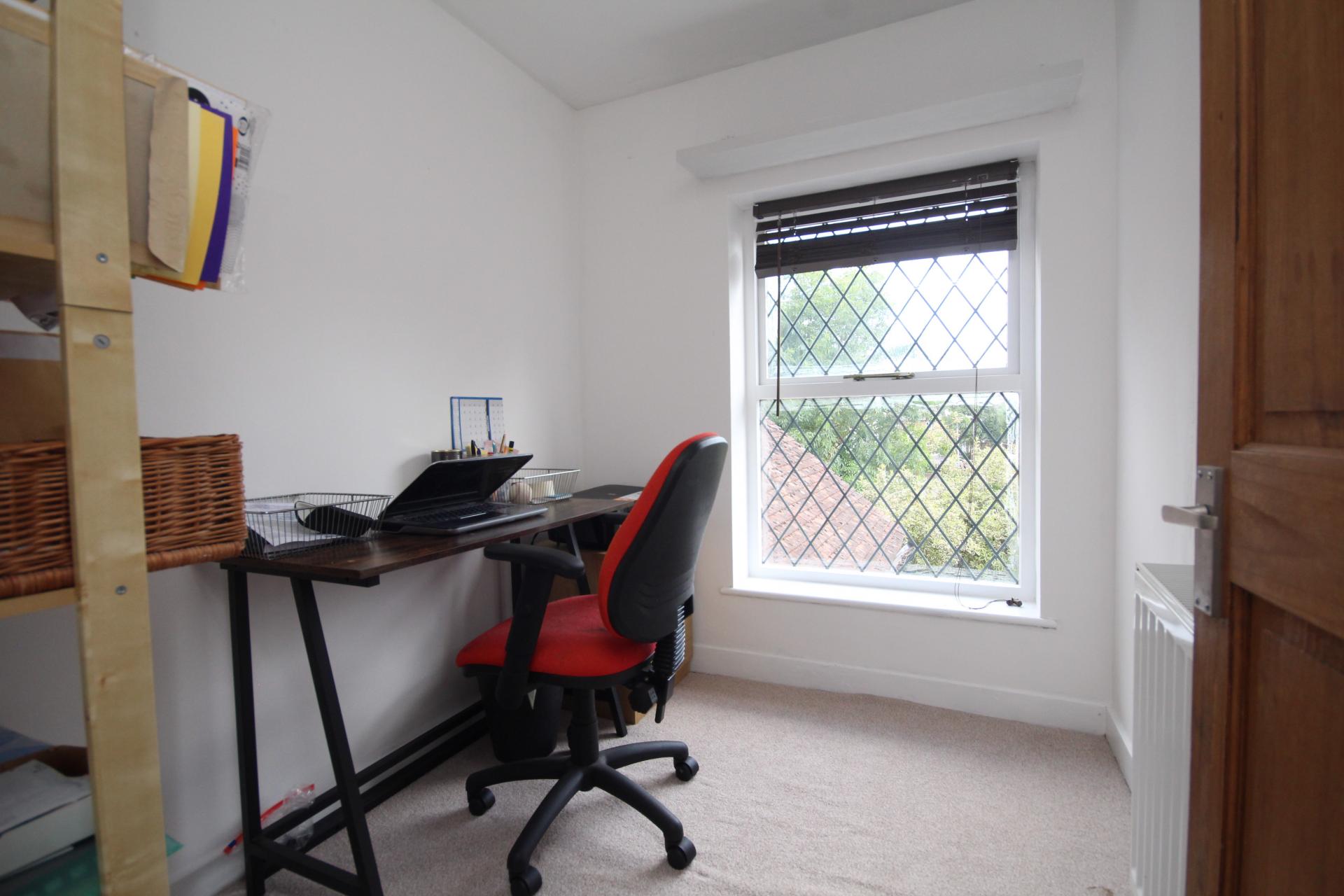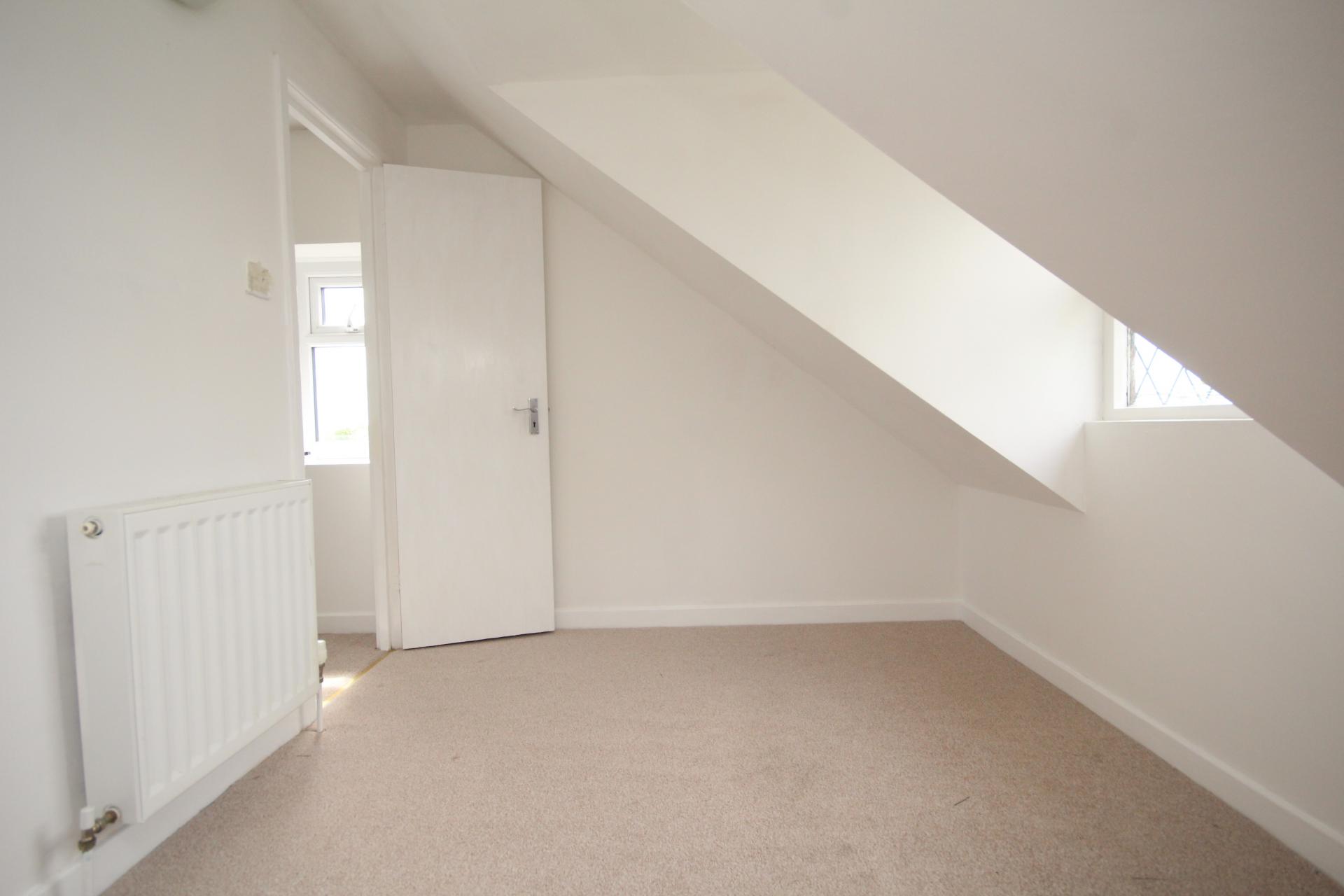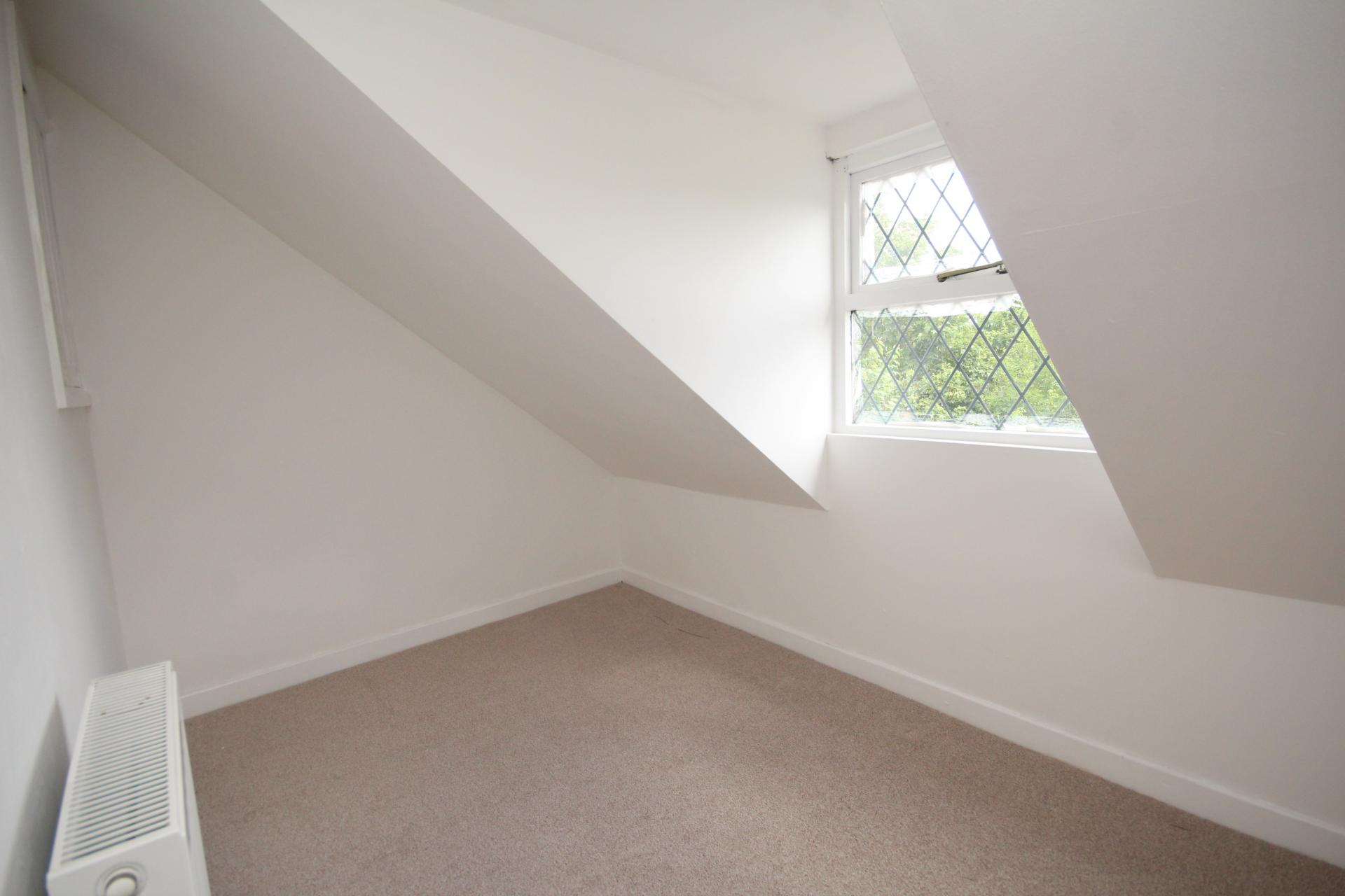 Double glazed lead light window to rear, eaves storage cupboard and radiator.