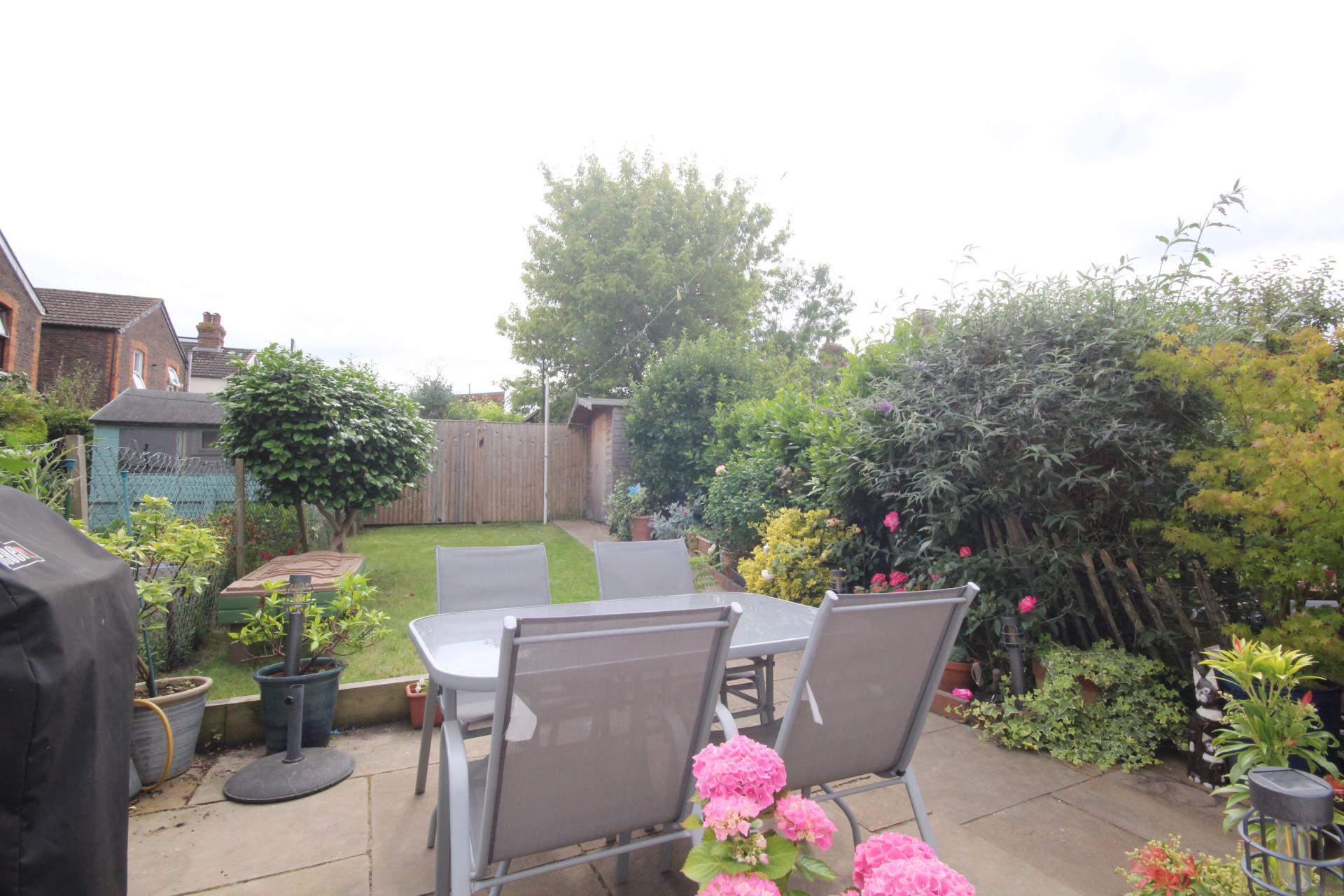 To the rear of the property is an Indian stone patio area with the remainder of the garden being mainly laid to lawn with flowered boarders housing an array of establishes shrubs and plants, timber shed, side pedestrian access, right of way access and outside water tap.
