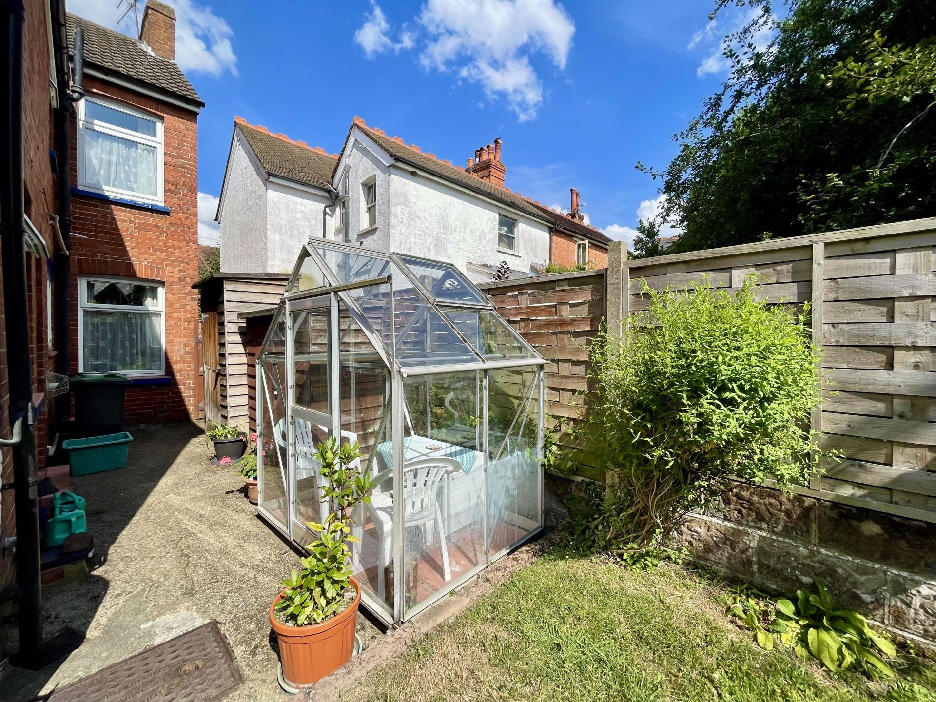 to the rear of the property is a hard standing patio area with the remainder of the garden being mainly laid to lawn, side pedestrian access, two timber shed's and greenhouse.