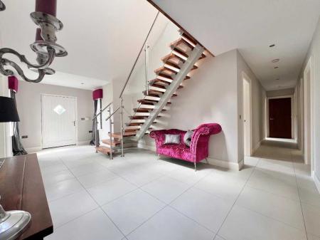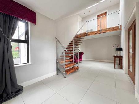 Ground FloorEntrance HallWith feature walnut floating staircase with glass panels and metal railings, tiled floor, vaulted ceiling, recessed lights, glazed double doors to kitchen.Living RoomWith feature cream ornate fireplace, tiled floor, tv point.Open Plan Kitchen/Dining & Living AreaAn excellent range of modern fitted units and contrasting centre island/breakfast bar with silestone worktops and silestone upstands, undermount sink, integrated high level double ovens, 5 ring gas hob, stainless steel ceiling extractor fan, integrated microwave oven, integrated dishwasher, LED downlighting, under unit LED lighting, pop-up plug sockets, recessed lights, tiled floor, dining and living area multi fuel stove with back boiler, open plan to sunroom.SunroomOpen plan to kitchen, feature gas remote controlled fire, vaulted ceiling, double doors to patio paved area, tiled floor, tv point.Utility RoomWith eye & low level units, stainless steel sink and drainer unit, plumbed for washing machine, space for tumble dryer, recessed lights, floor fully tiled.Family BathroomContemporary four piece white suite comprising of wc, whb, bath, power shower with rainfall shower head, illuminated mirror, chrome towel rail, recessed lights, walls part tiled, floor fully tiled.Master Bedroom (En-Suite & Dressing Room)With tiled floor.Property Ref: 11632781_1030527