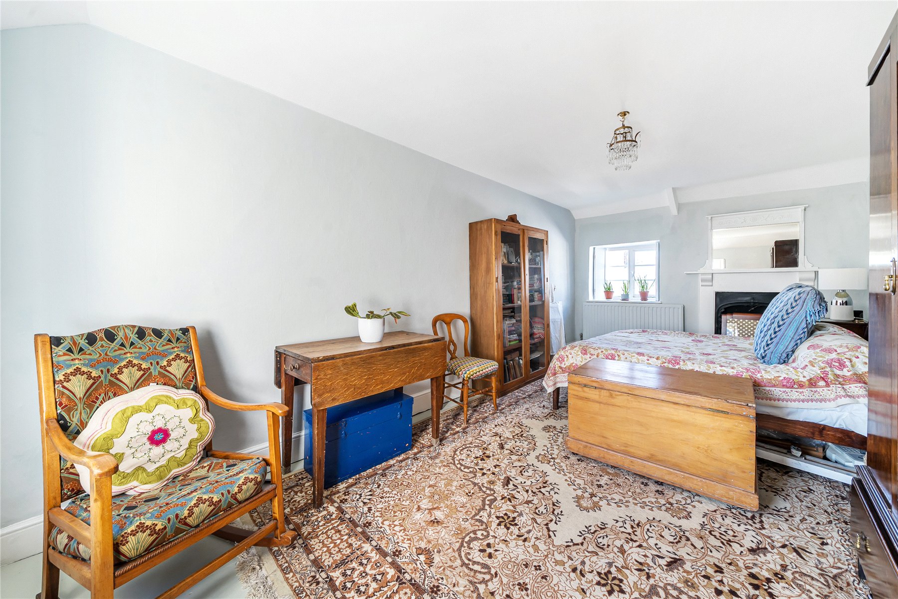 The first floor landing offers access to two double bedrooms with modern shutters, period fireplaces, and wardrobe cupboards. Outside, the property boasts a delightful cottage-style garden to the front with mature trees, bushes, and shrubs, as well as a raised pebble area, corner shed, log store, and gated entrance leading to Monmouth Hill, nestled in the heart of the conservation area.