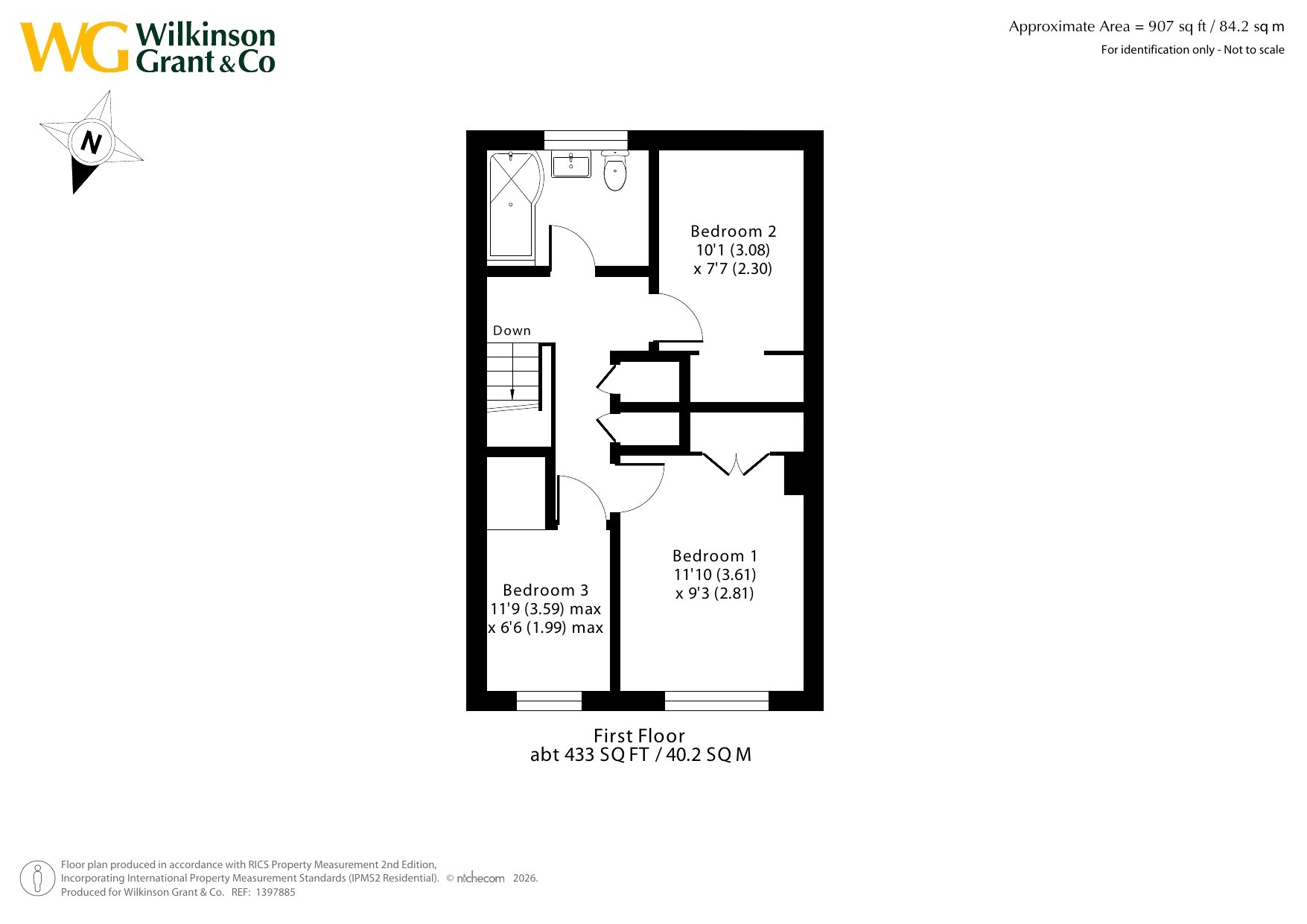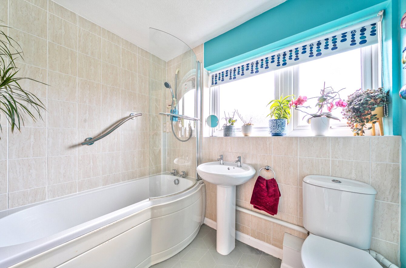 Stairs rise to the first floor with 3 bedrooms. Bedrooms 1 and 2 are both double in size and both benefit from built in wardrobes. Completing the first floor is a contemporary bathroom with a large P shaped bath.