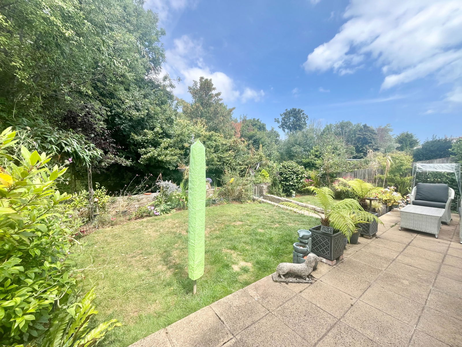 REAR GARDEN The rear garden has carefully been divided into two tiers to make the most of each space. The first area has a sizeable patio area perfect for outdoor dining and two turfed areas. Steps then lead down to a large turfed area where the shed and greenhouse can be located.