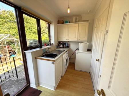 uPVC double glazed window overlooking the garden. A stainless steel sink with a hot and cold mixer tap over. Space and plumbing for a washing machine. Oil boiler. Door through to the garage and kitchen and a uPVC double glazed door providing access with steps down to the garden.