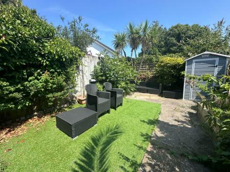 OUTSIDE The property has its own allocated parking space within the communal car park along with access to a fair amount of visitors parking. To the front of the property is a small , level front garden laid to stone chippings with space for potted plants. To the rear of the property up a couple of steps is a beautiful sunny rear garden comprising a sunny decked patio area along with a fair size paved area and patch laid to artificial lawn for a low maintenance finish. There are raised planting borders on side of the garden along with mature planted shrubbery. The vendor will also be leaving a storage shed in the garden along with the garden table and chairs. The property also has access and the benefit of the well cared for communal garden which provides a lovely lawned area with mature planted borders. From the communal garden you can also enjoy a wonderful sea view.