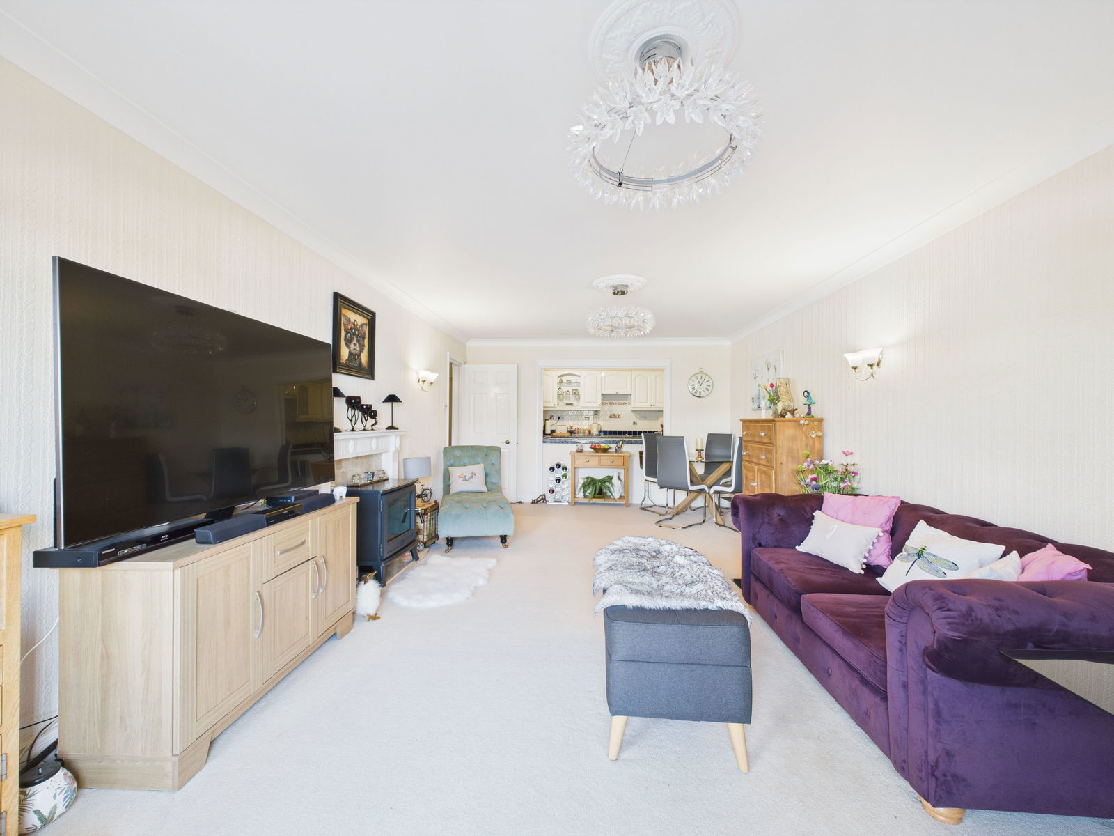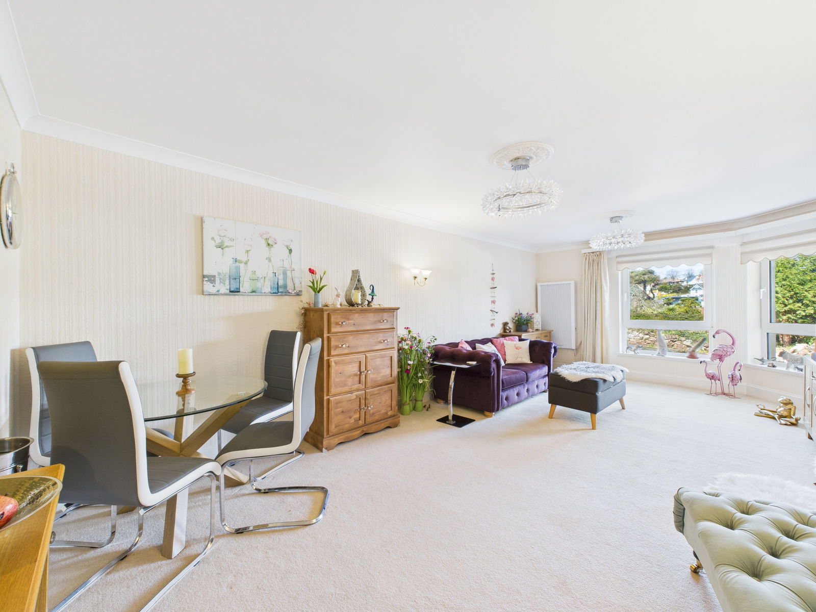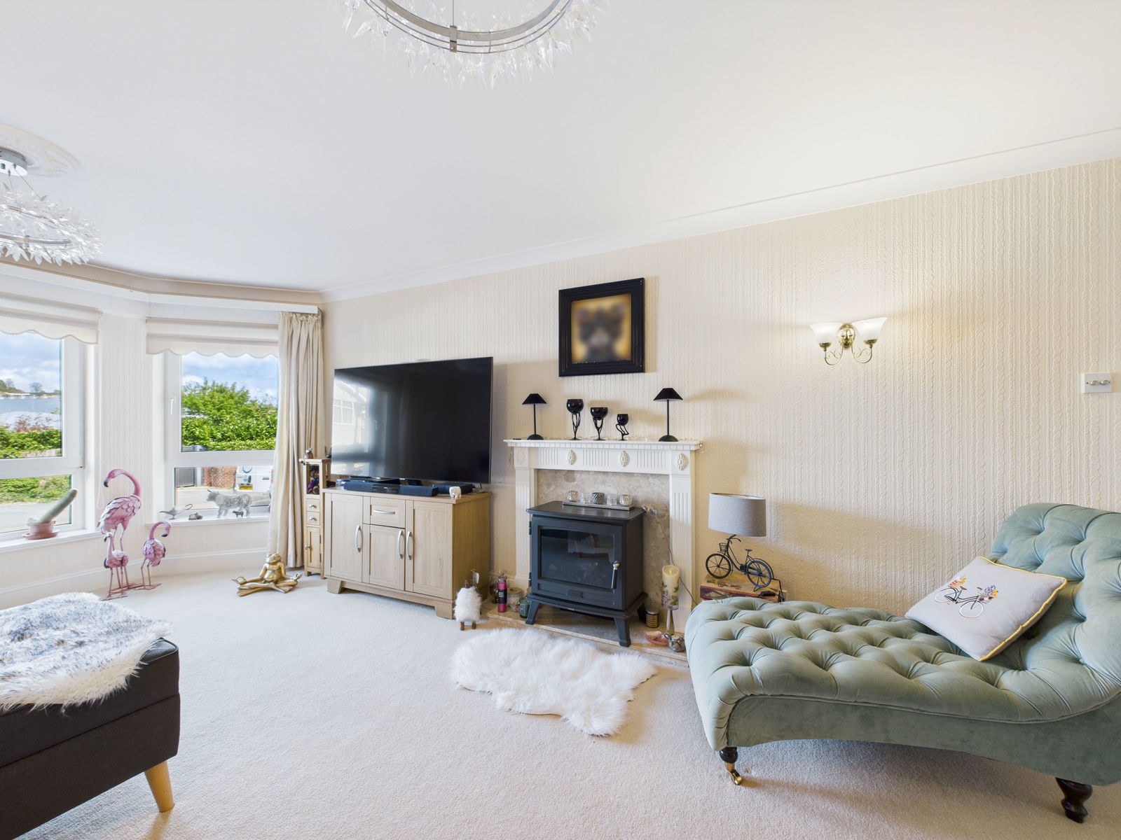 LOUNGE/DINER - 6.7m x 3.7m (21'11" x 12'1") max. A superb room having two double glazed windows enjoying lovely sea views across the water to Corbyn head. Ample space for a dining suite. Digital radiator. TV point. Decorative fireplace with wood surround. Wall light points.