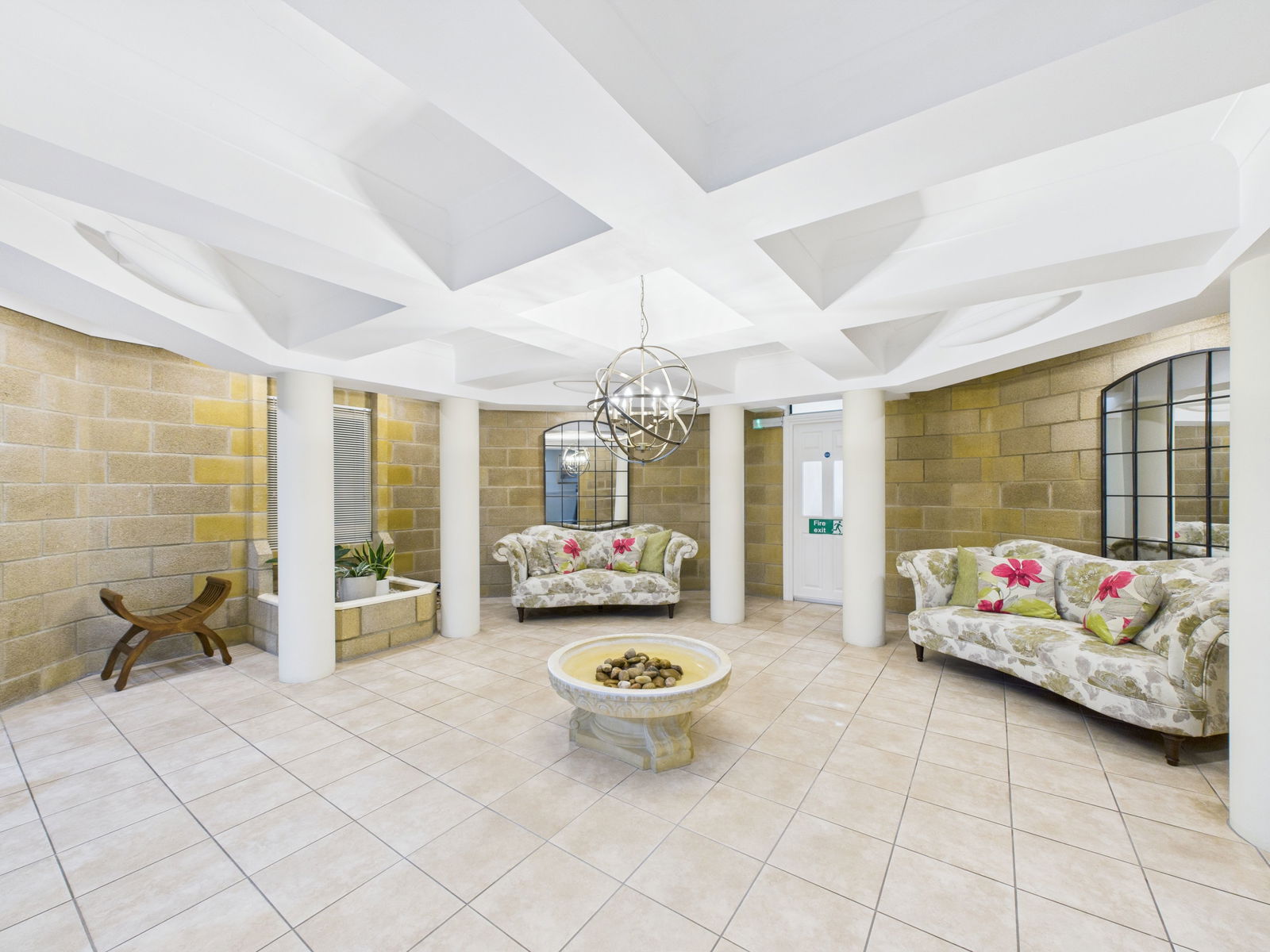 COMMUNAL ENTRANCE Access via a security intercom. Large foyer with seating area and water feature. Private front door to the flat.