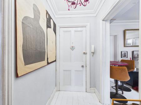 ENTRANCE HALL Natural floorboards. Handy storage area for shoes costs etc. Telephone and Intercom.