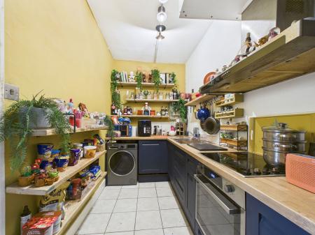 KITCHEN - 5.03m x 1.85m (13'42" x 6'0.8") The Kitchen was installed two years ago (2023) and comprises: Tiled flooring; matching wall and base units with work-surfaces over; four-ring induction hob; fitted cooker; stainless steel sink and drainer with mixer tap; plumbing for washing machine, mainly tiled splashback,.