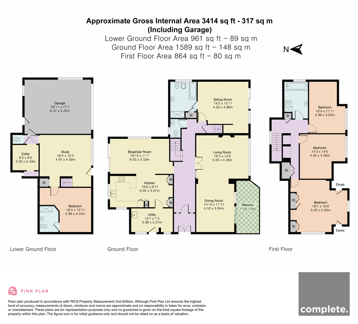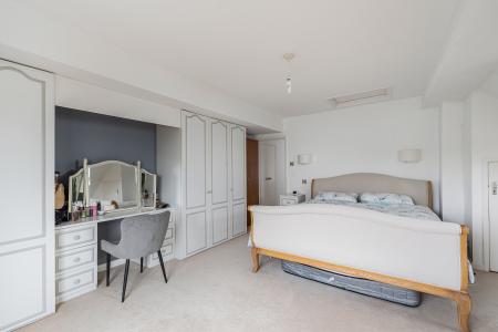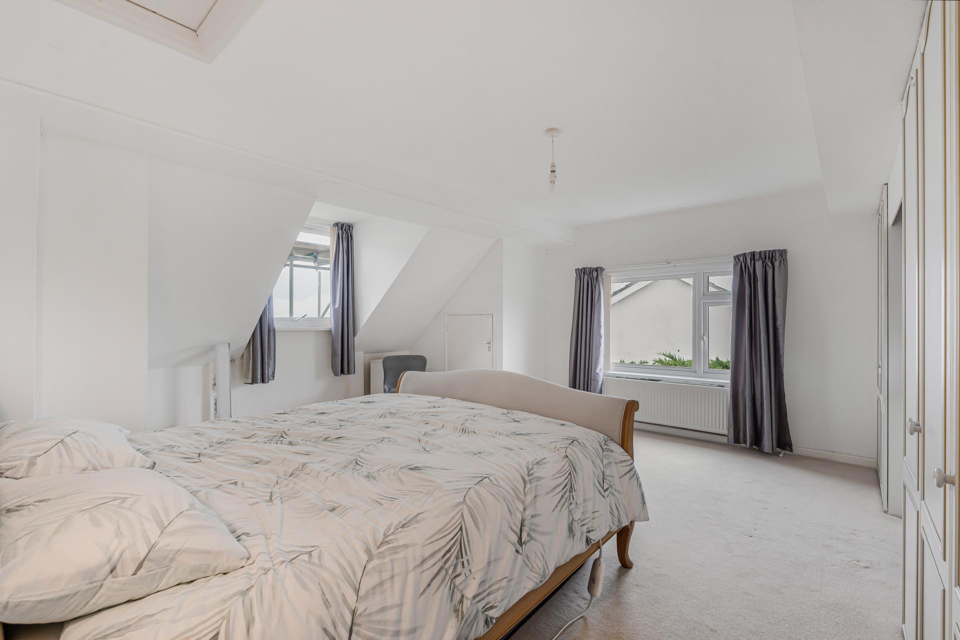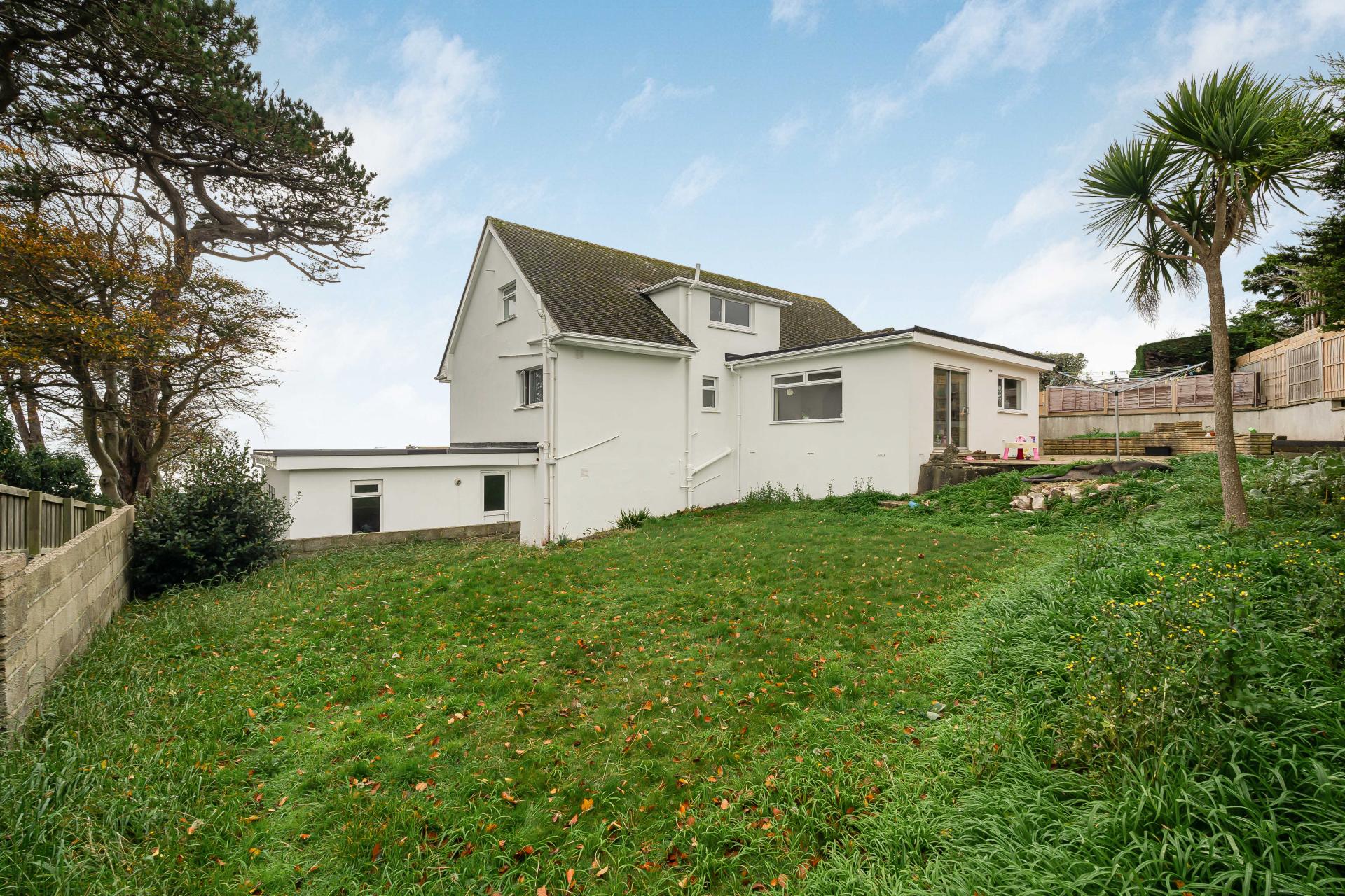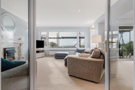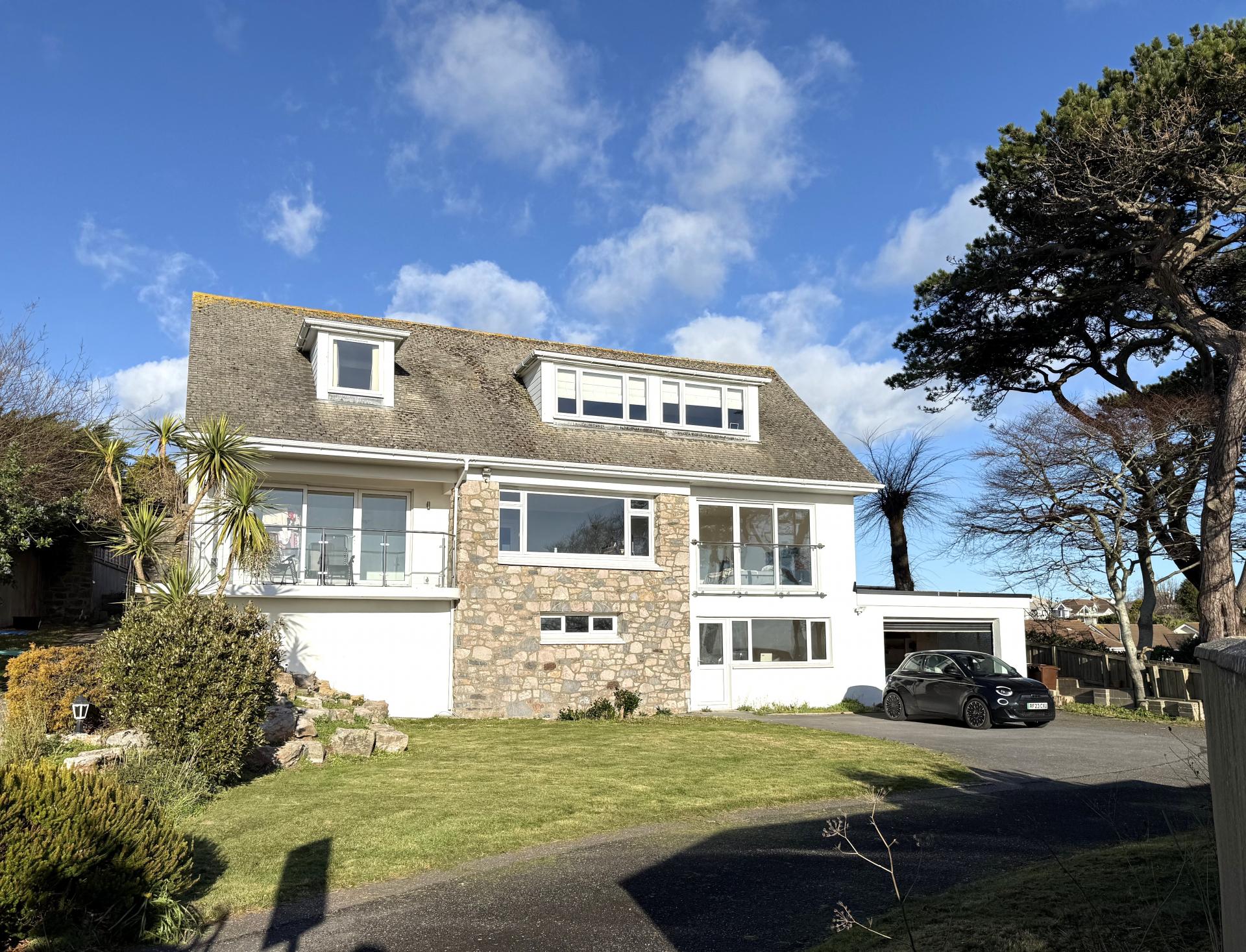 Upstairs, three large double bedrooms continue the theme of light and space, each enjoying far-reaching sea views and a calm, airy atmosphere. A family bathroom with both bath and separate shower serves this floor beautifully. The lower ground floor adds further flexibility, with a guest bedroom and en-suite, a private study or gym with direct access to the garage, parking and front garden, a useful cellar and an additional cloakroom - perfect for a home office, hobby room, or private retreat.