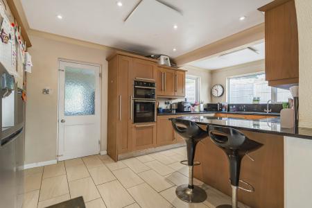 Off the hallway is a versatile additional reception room, ideal as a study, sitting room or even a fifth bedroom, complete with its own en-suite bath and shower. A separate cloakroom adds practical convenience for guests. To the rear, the heart of the home unfolds with a kitchen breakfast room, semi-open-plan dining area, and adjoining utility, all overlooking and opening onto the private rear garden. The kitchen is well-appointed, offering ample storage, generous work surfaces and all the space a family or dinner party could need. The utility room provides handy access to the side and front of the property, keeping everyday life seamless.