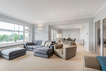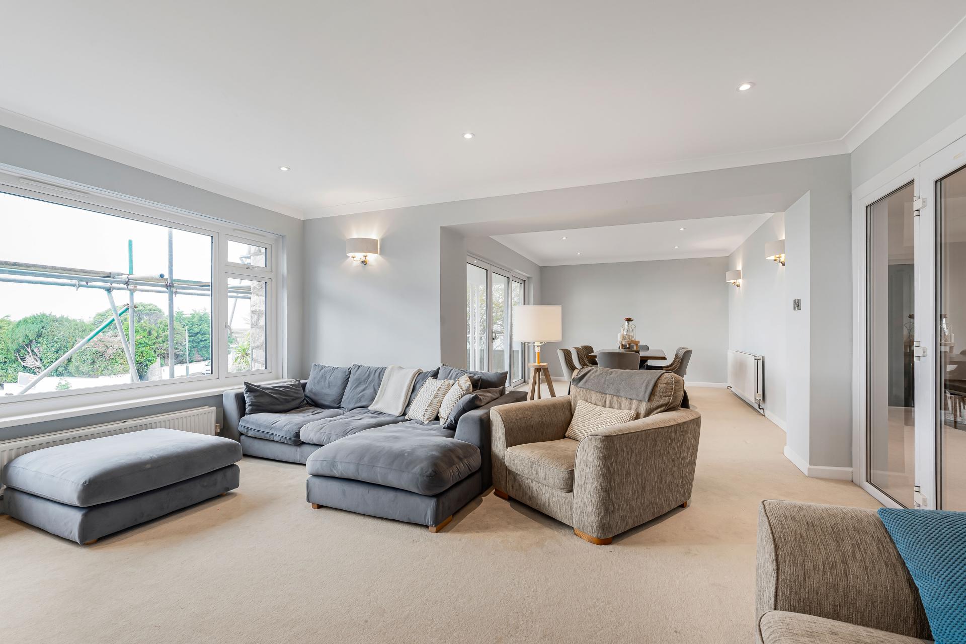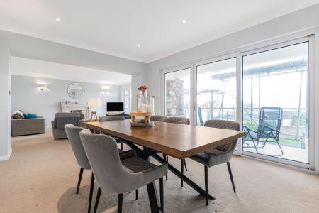 Approaching the property, a sweeping driveway leads to a double garage and ample off-road parking, framed by a walled front garden. Steps and a pathway guide you to the main entrance, with convenient side access continuing to the rear garden. Step inside, and the hallway opens into the principal living room, where large picture windows frame the sparkling sea and Torbay views. From here, a south-facing balcony stretches out - your perfect spot for a morning coffee or evening G&T, soaking in the light and the panorama. This room is generous, bright, and effortlessly elegant, with space for relaxed family living and entertaining.