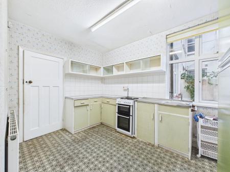 KITCHEN - A good size with cupboards and drawers over and under surfaces, space for cooker, window to side, leading to a utility area with plumbing for washing machine.