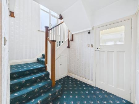 HALLWAY Very spacious hallway featuring a staircase and storage space. Door into:-