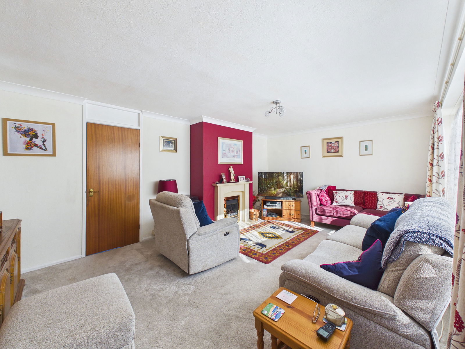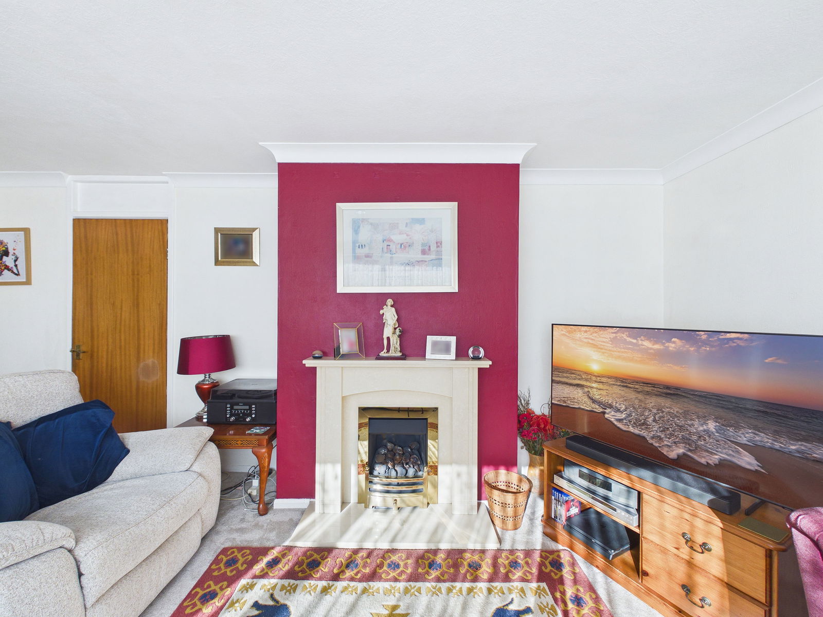 LOUNGE The spacious light lounge is at the front of the property, it has an extra large window facing to the front with radiator below, gas fire with marble surround.